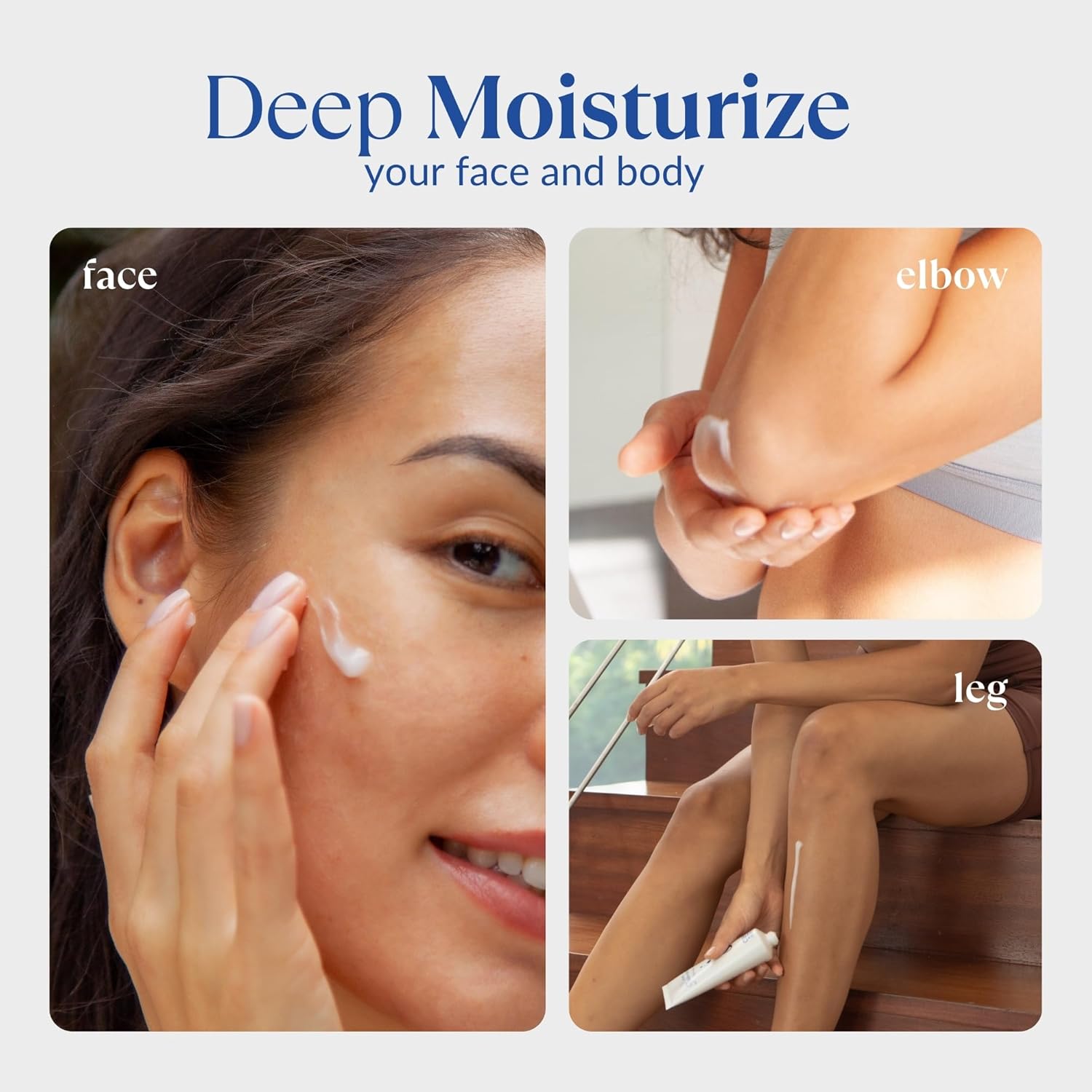 • + GENTLE ON SKIN + Suitable for use as a face moisturizing cream, neck cream, hand cream, and body lotion.