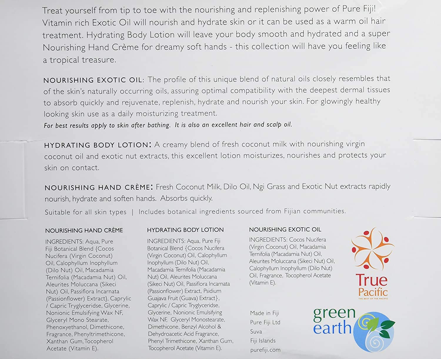 Pure Fiji Nourishing Trio, Ideal Spa Bath Gift Set for Women - Travel Kit - Includes Exotic Body Oil, Hydrating Body Lotion For Women and Nourishing Hand Cream, Noni Scent