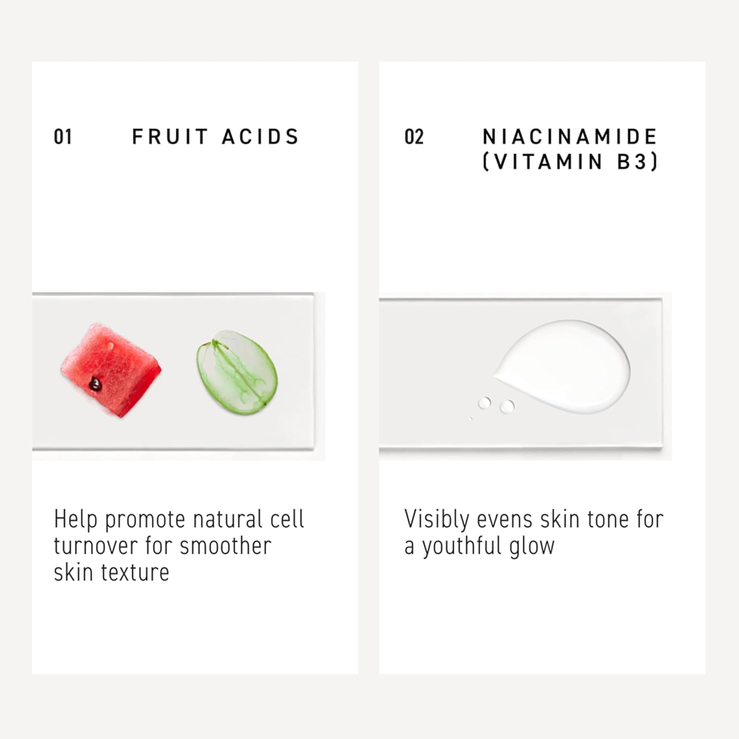 - Face Exfoliant: Infused with fruit acids, this formula helps lift away dead skin cells, promoting healthy cell turnover. This hydrating toner leaves your skin feeling soft, bright, and refreshed.