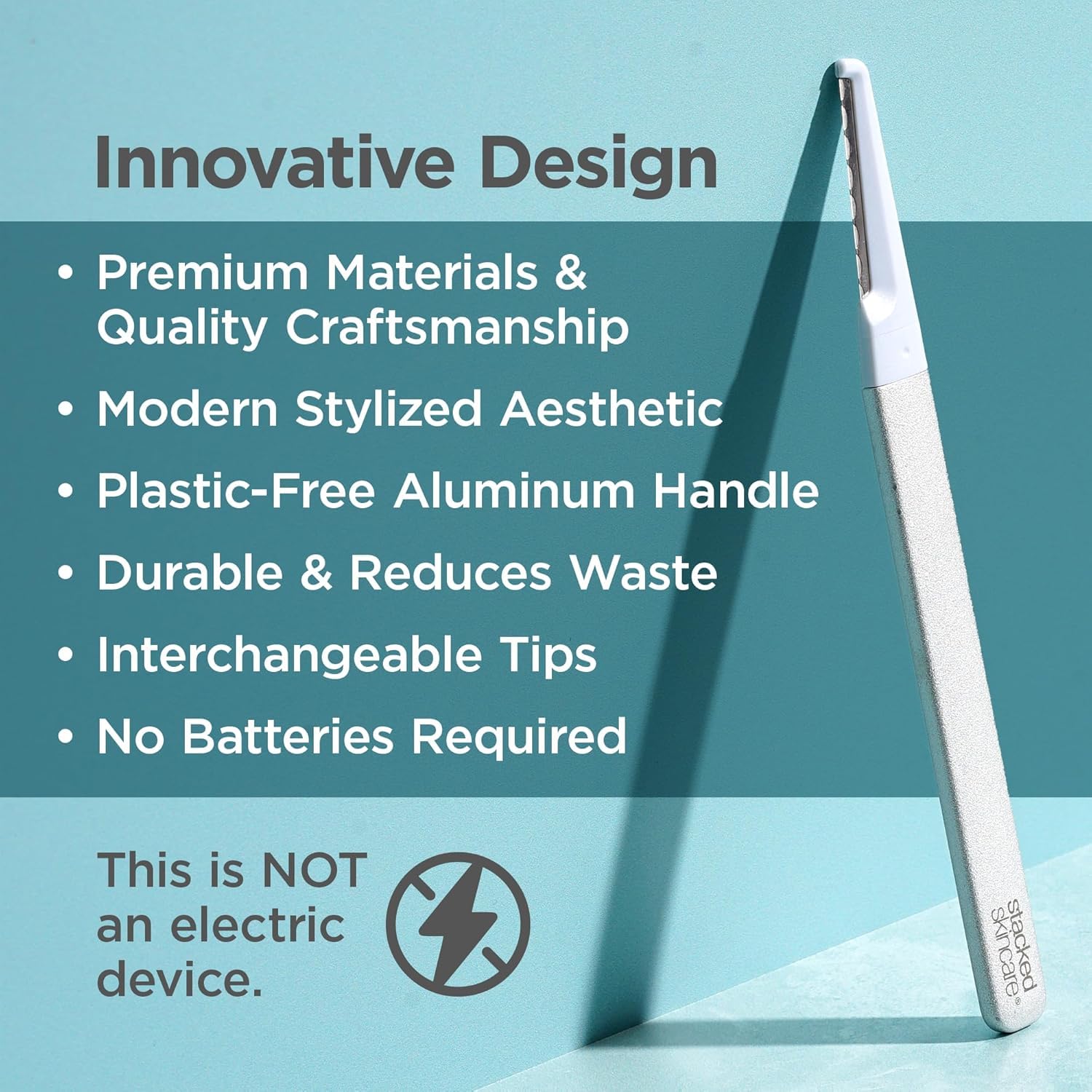StackedSkincare Dermaplane Razor for Women Face - Professional Facial Razor, Non-electric Face Shaver for Women - Eyebrow Razor & Dermaplaning Tool for Face Exfoliation - Includes Handle & Blade