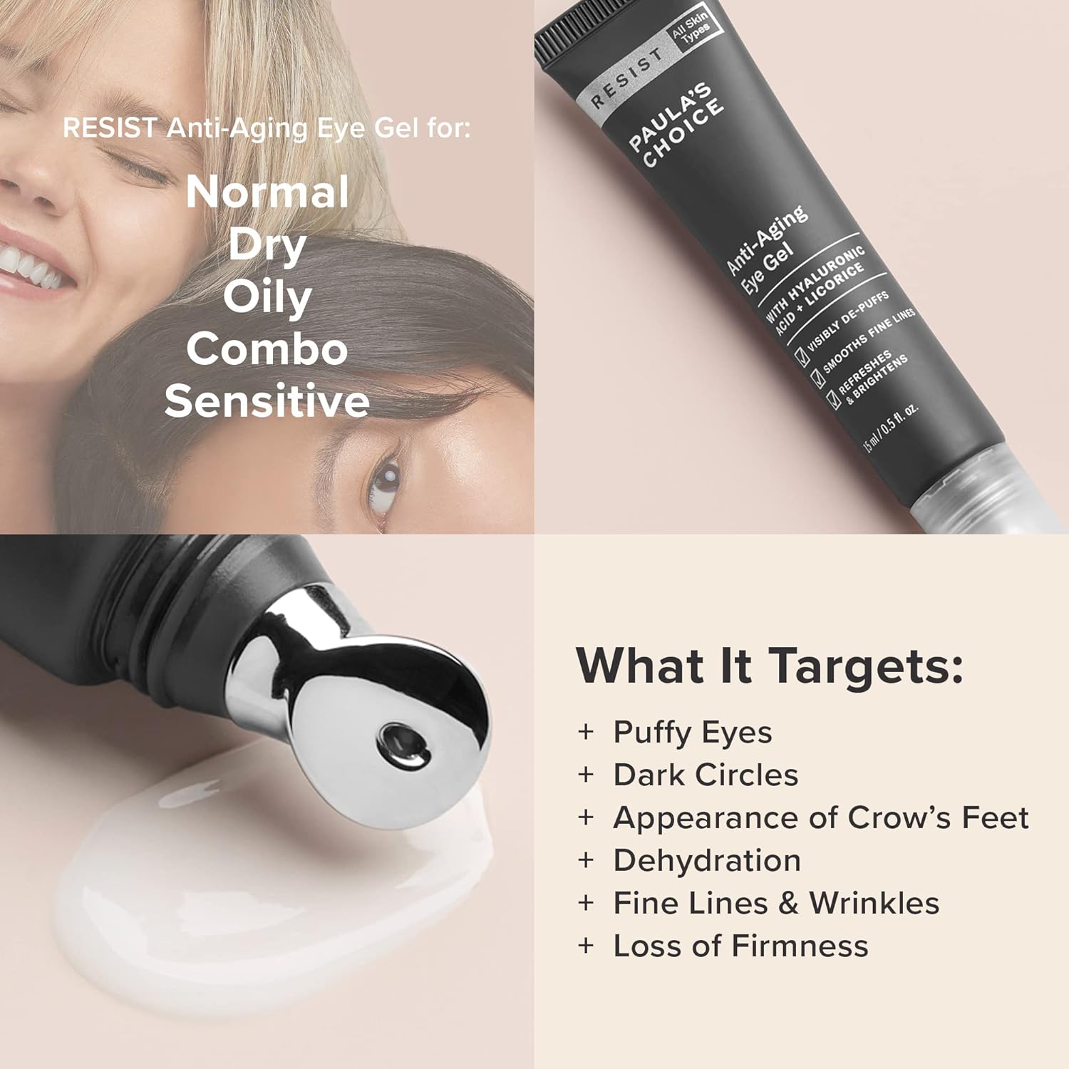 - Paula's Choice RESIST Anti-Aging Eye Gel blends hyaluronic acid with licorice & peptides to reduce fine lines & signs of fatigue around the eye area by hydrating brightening & plumping that most delicate skin for a well-rested more youthful appearance.