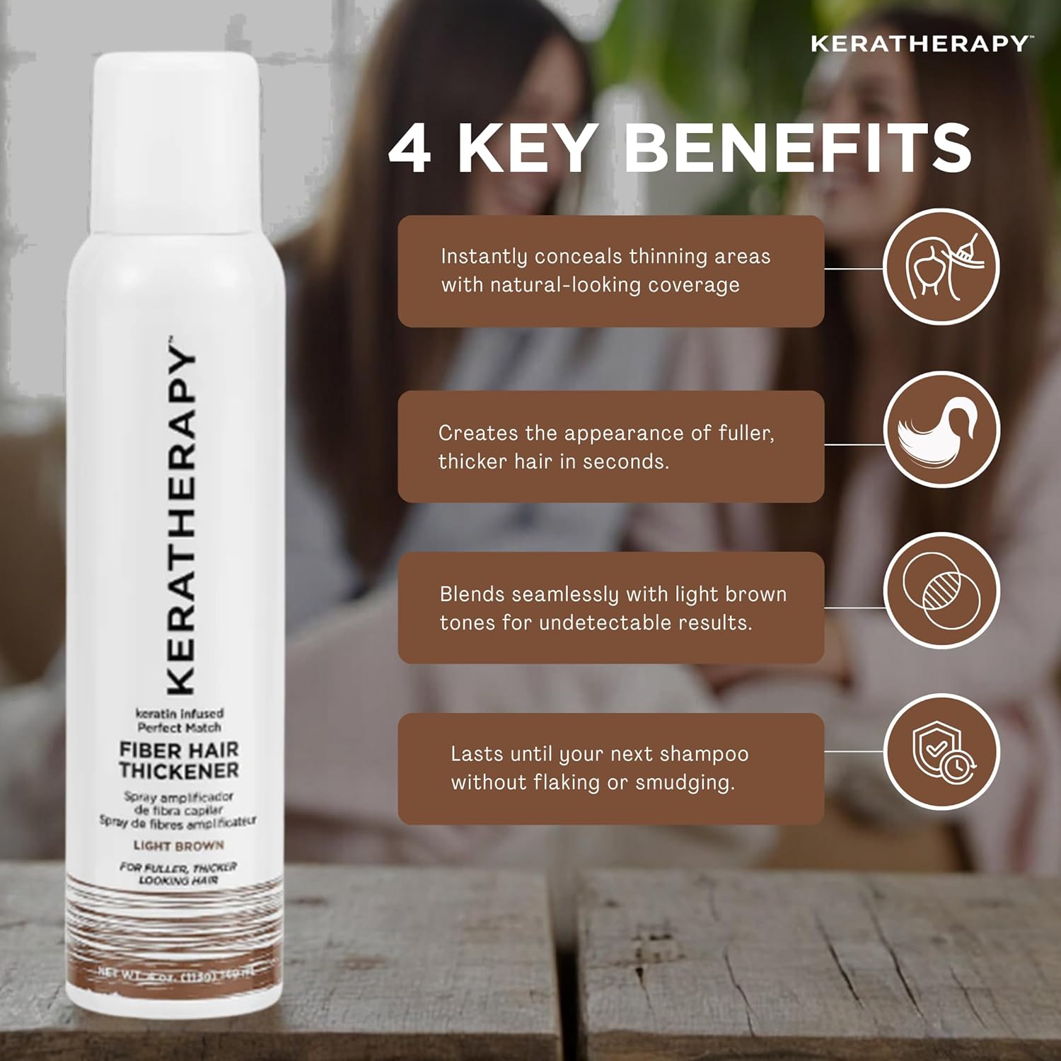 Keratherapy Keratin Infused Perfect Match Fiber Hair Thickener Spray, Light Brown, 4 fl. oz., 140 ml - Volumizing, Thickening, & Concealing Hairspray for Scalp Coverage, Roots & Thinning Areas
