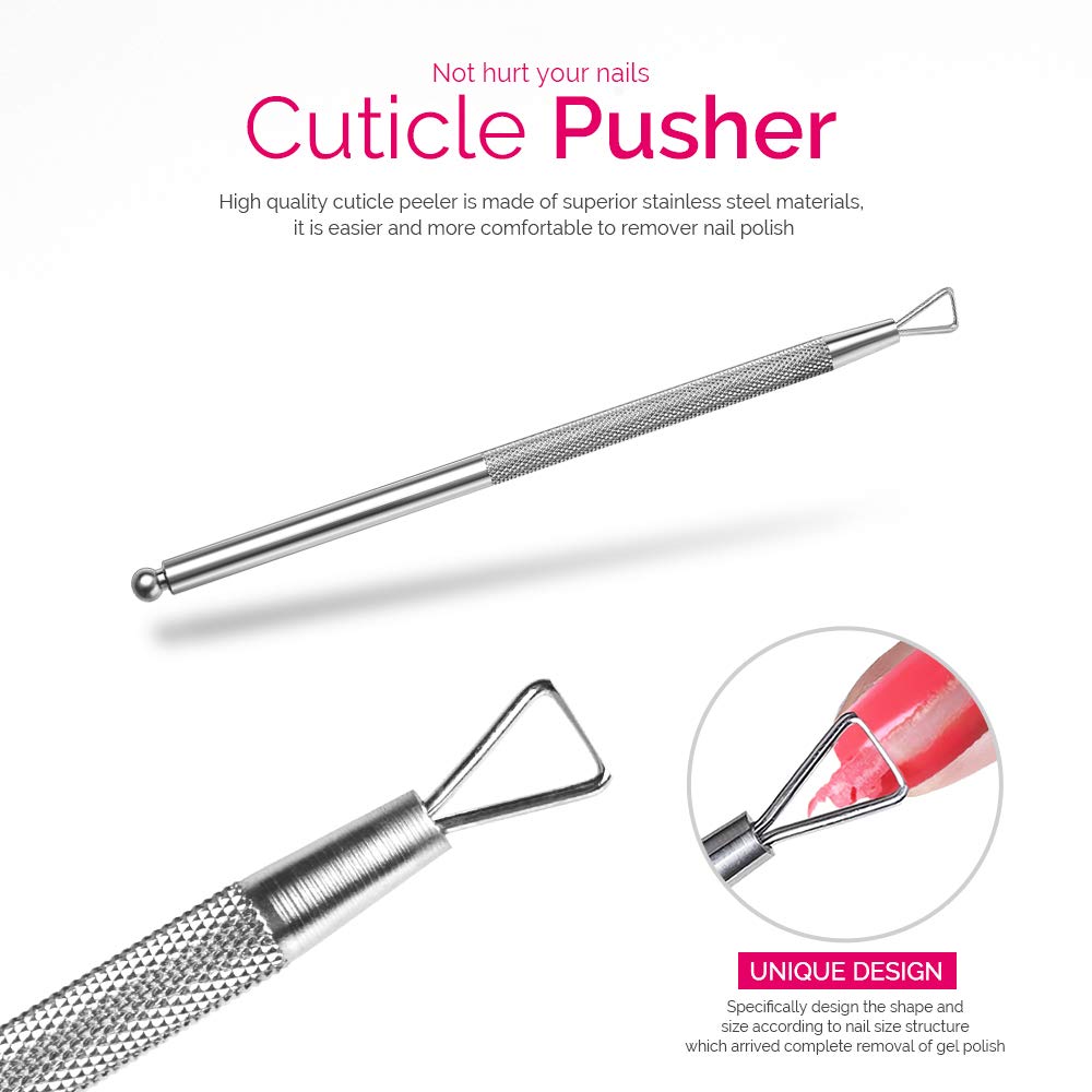 - Nail Gel Remover Kit: Gel nails removal is not easy part. You need to remove gel polish but nail salon will spent lost of time. And we provide the soak off nail clips kit, can remove gel nail at home Include tool for soak, dissolve, and remove gel polish. Nail file, nail brushes, nail remover pads, nail clips, cuticle pusher and buffer block