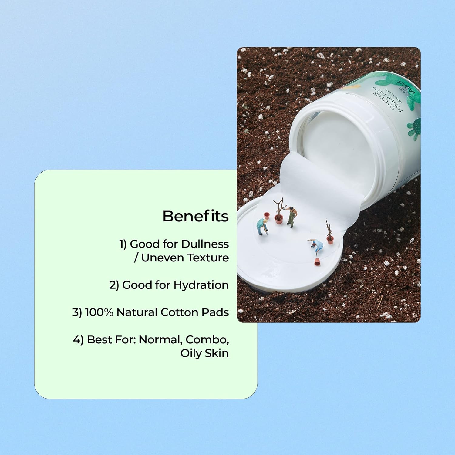 • HYDRATING & EXFOLIATING: Instead of using Purified Water we went a step further and used Cactus Extract as our ingredient. This allowed us to contain over 87% of Cactus Extract in our Cactus Toner Pads. With special exfoliation/healing ingredients such as Witch Hazel Extract and Cica that effectively wipe off waste to start your skincare routine.