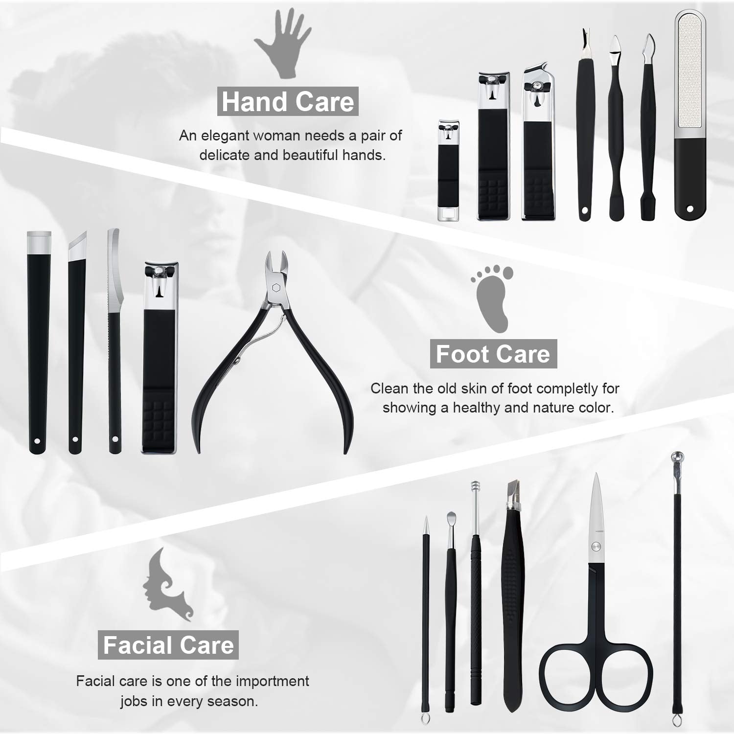 - ⤠MULTI-FUNCTION: The function of most nail clippers set is centered on trimming nails while our kit has a variety of functions including hand care, foot care and facial treatment .The new tools include mini nail clipper for kids, Acne bowl needle and spiral ear spoon that can meet your all kinds of care needs in daily life.