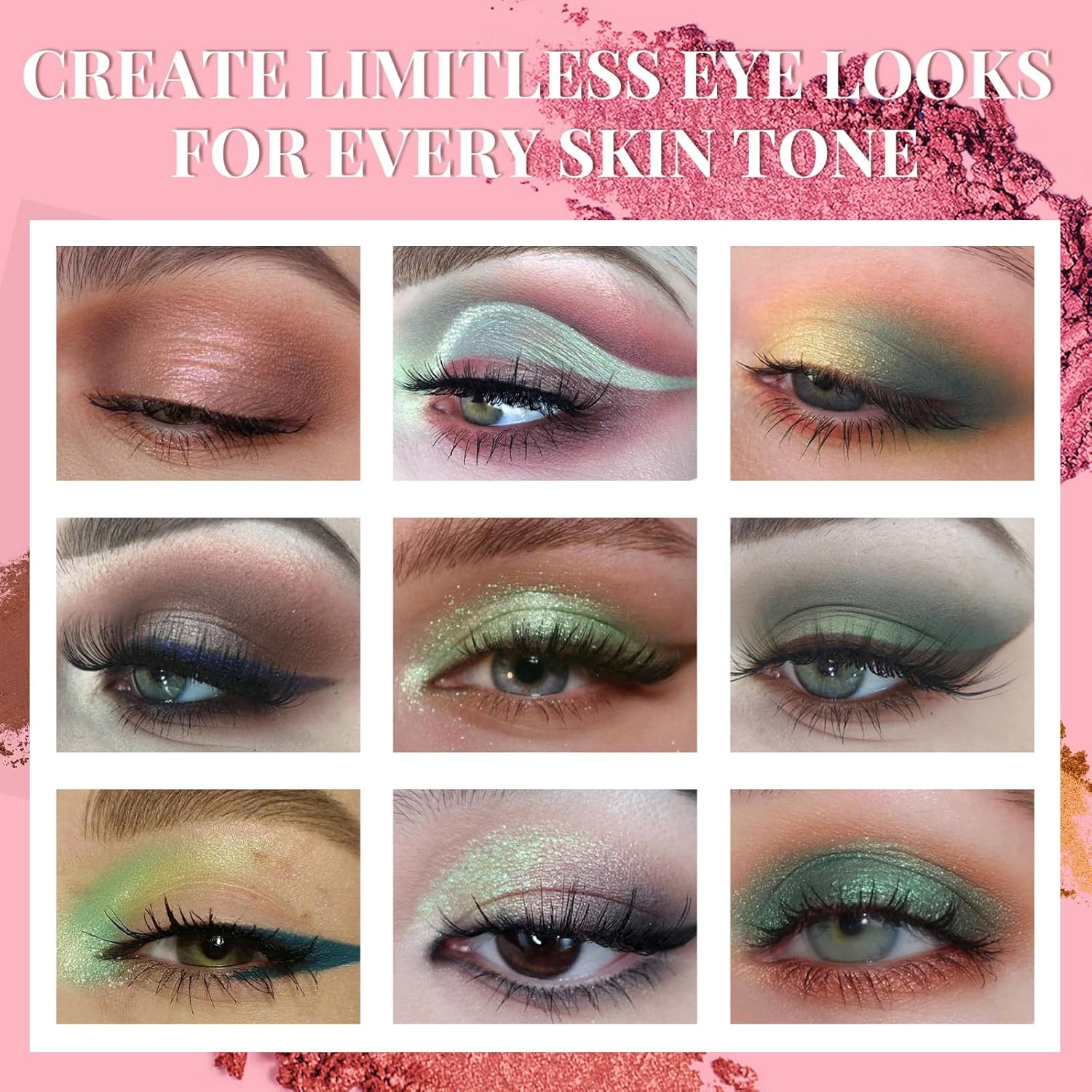 - ►Long-wear formula with a creamy powder hybrid that instantly melts into skin and blends with almost zero effort.Rich color payoff for highly-pigmented, It’s sure to be your go-to palette of the season. This natural pinky green palette of multidimensional and long wearing finishes and also can used as either eyeshadow or liner.