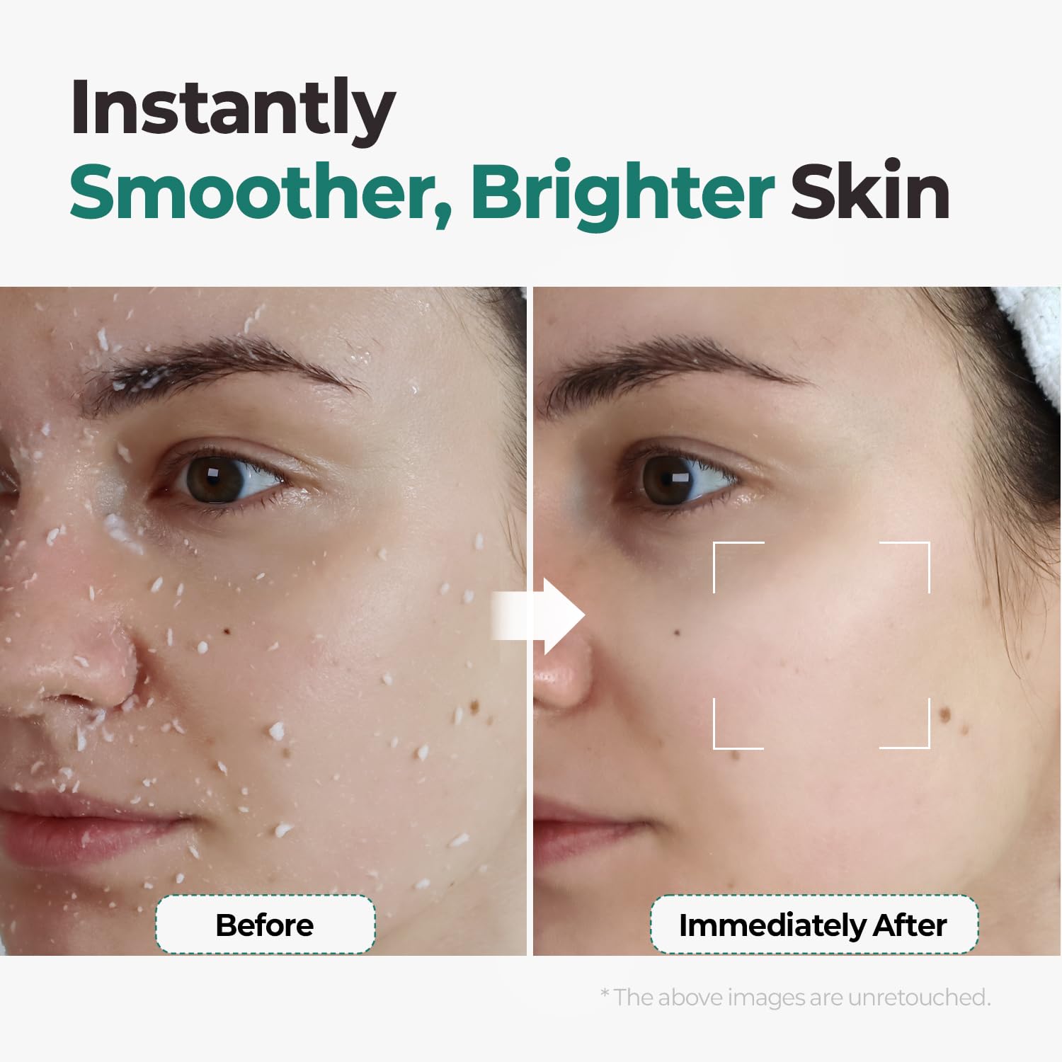 - Instantly Feel the Baby-Soft, Silky Skin: It's time to say goodbye to dry, flaky, and dull skin! This Korean facial exfoliator instantly smoothens rough skin texture by removing dead skin cells, impurities, and buildups in pores and helps you achieve a brighter complexion with ease
