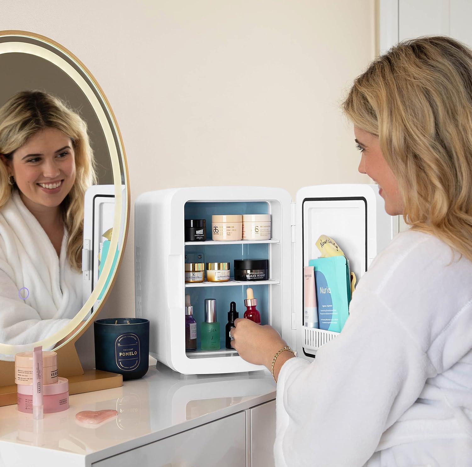 Cooluli 10L Mini Fridge for Bedroom, Car, Office Desk & Dorm - Portable Thermoelectric Cooler & Warmer for Food, Drinks, Skincare - AC/DC Refrigerator with Glass Front, Black