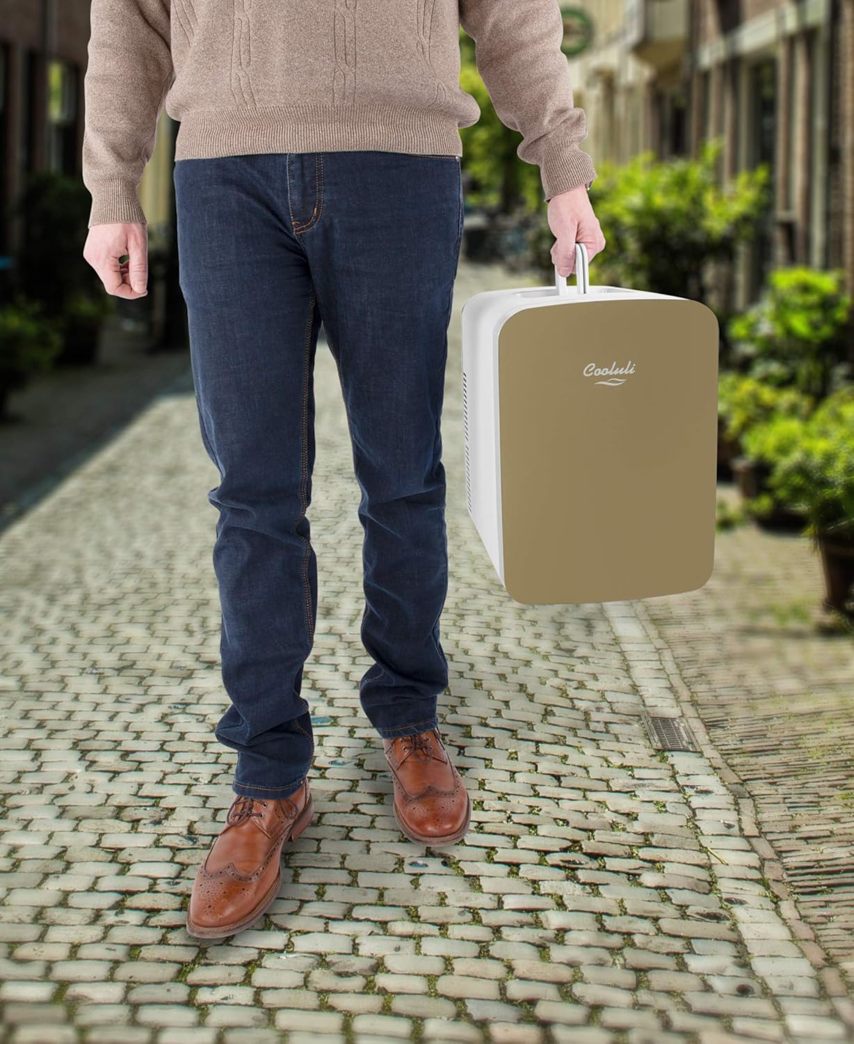 Cooluli 15L Mini Fridge for Bedroom - Car, Office Desk & College Dorm Room - 12v Portable Cooler & Warmer for Food, Drinks, Skincare, Beauty & Makeup - AC/DC Small Refrigerator with Glass Front, Gold