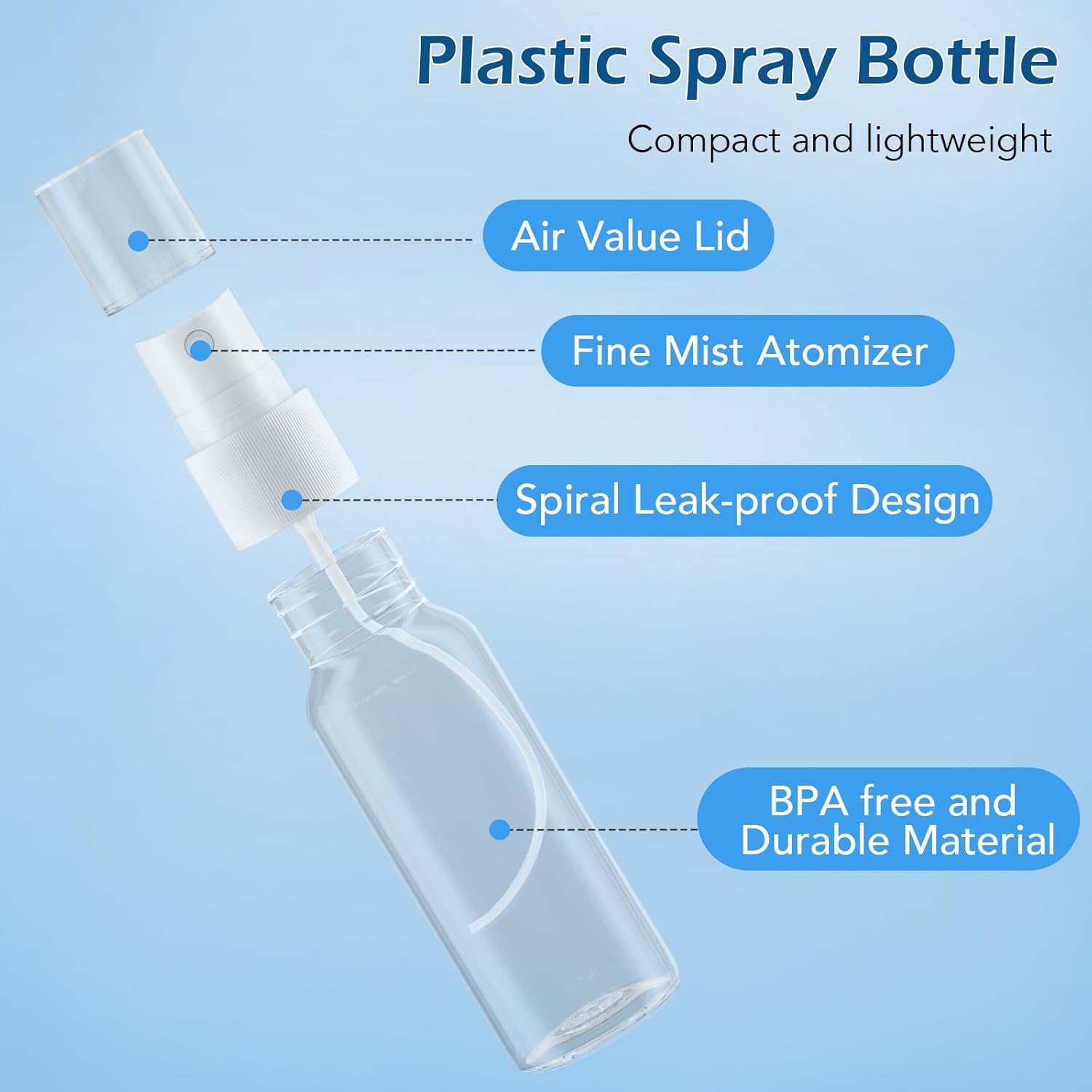 - 【Leak-proof Design】- The small plastic spray bottle is equipped with cap and leak-proof loop inside which protect your luggage from dripping and spilling. This design will make you feel more at ease during the travel