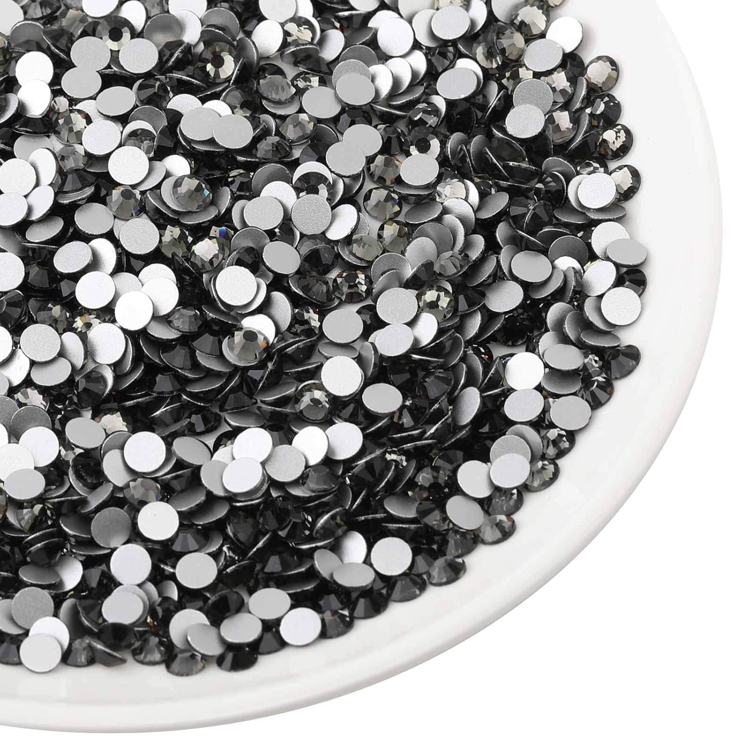 Beadsland 1440pcs Flat Back Crystal Rhinestones Round Gems for Nail Art and Craft Glue Fix,Black Diamond,SS20,4.6-4.8mm