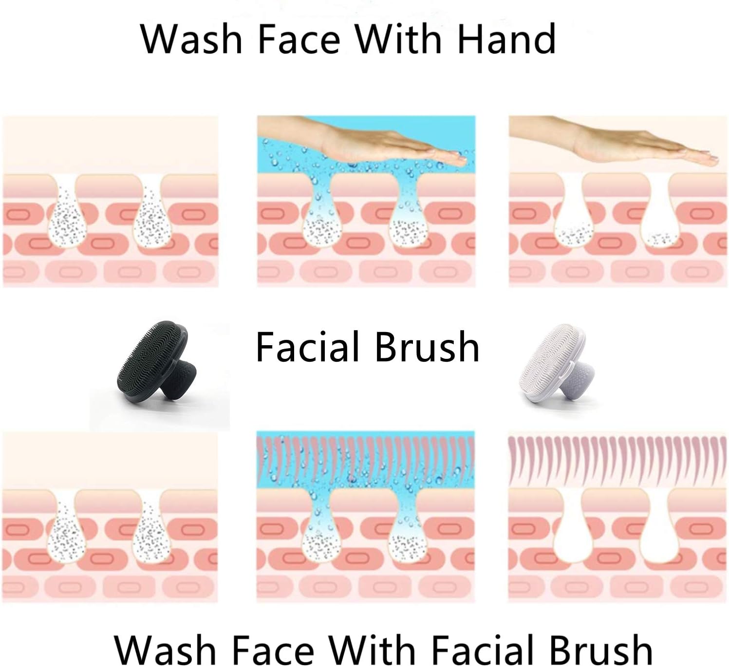 - [Food Grade Silicone Bristles] The bristles of the Silicone Face Scrubber are made of food-grade silicone, which is soft and smooth. Using our facial cleaner brush massage the face to clean the pores and enhance the absorption of skin care products.