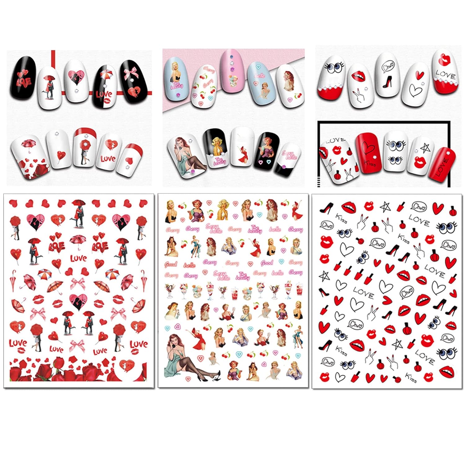 - 😍Multiple design available: You will get 982 pcs nail stickers perfect for Valentine's Day fashion accessories. Includes all sorts of classic Valentine's Day theme: heart, kiss, love, etc. Make you have a special nail art on a date!
