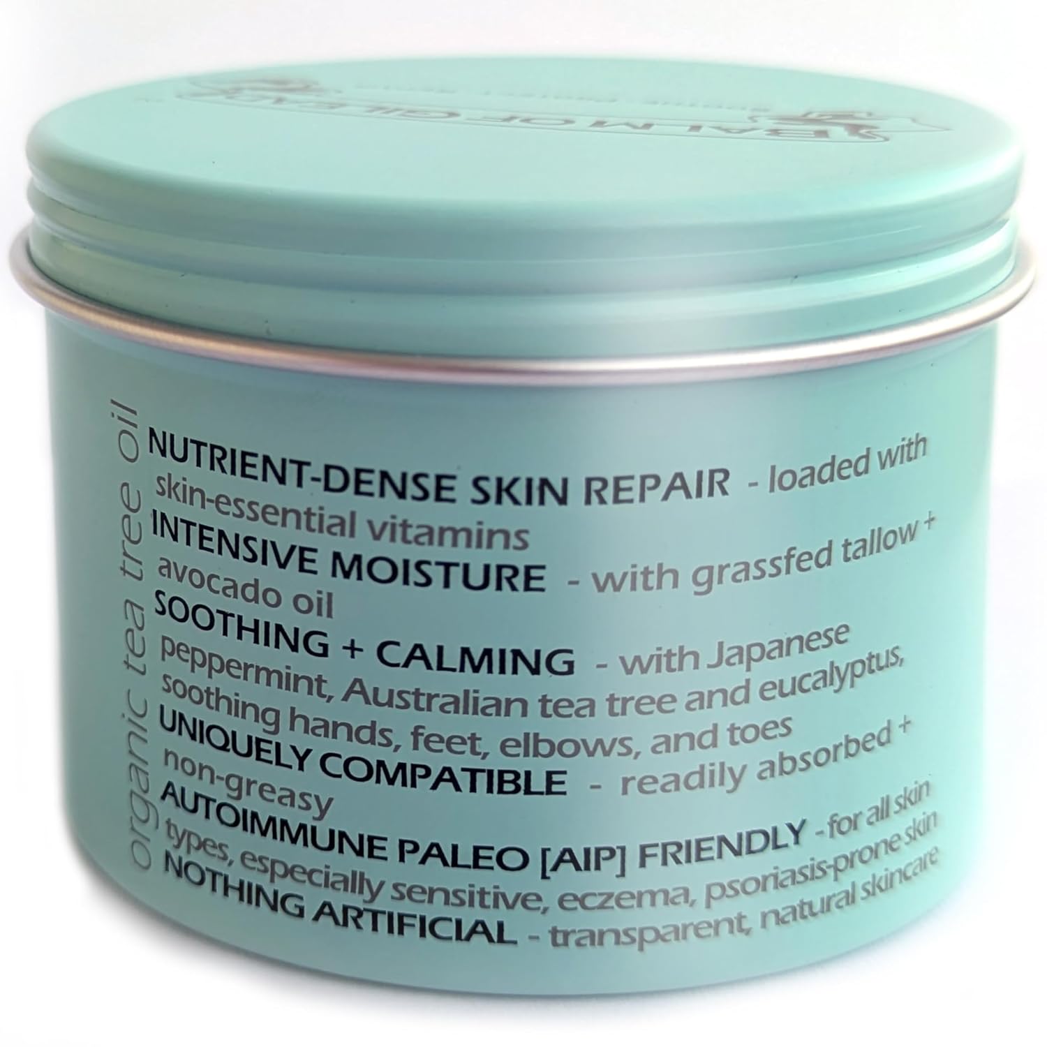 - šæ Soothing and Calming Moisture ā A nourishing foot and hand cream enriched with peppermint, Australian eucalyptus, and tea tree oils. This refreshing botanical formula helps soothe dry, rough, or irritated skin while delivering fast-absorbing hydration. Perfect for daily use on tired feet and overworked hands, this intensive tea tree balm leaves your skin feeling soft, smooth, and revitalized.