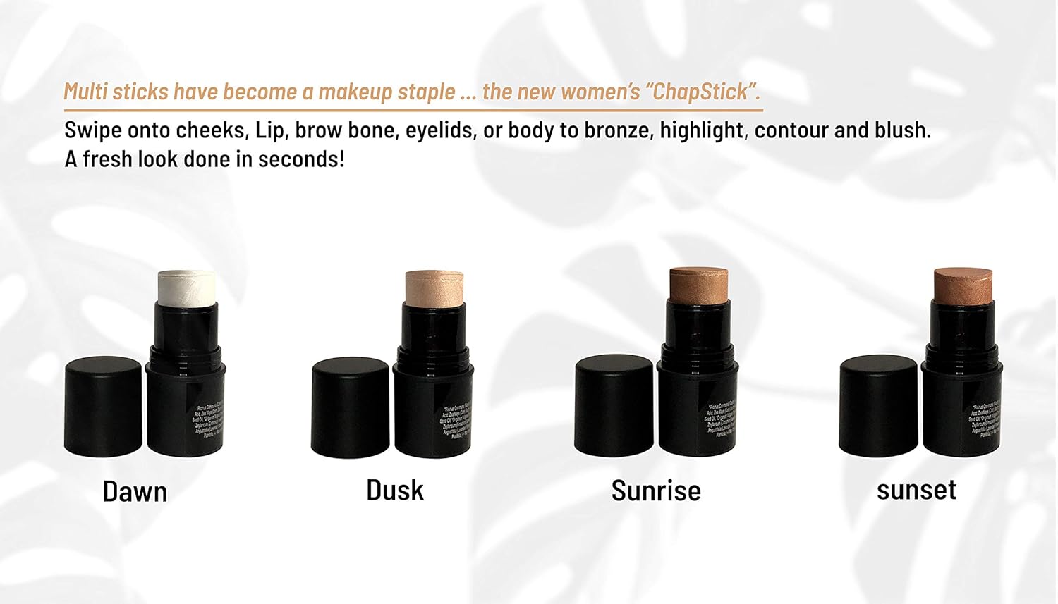 Natural Organic Multi Cream Sticks, Highlighter and Bronzers 100% Natural, Vegan, Gluten Free, Cruelty Free, Made in the USA, 0.18 oz. (Dusk)