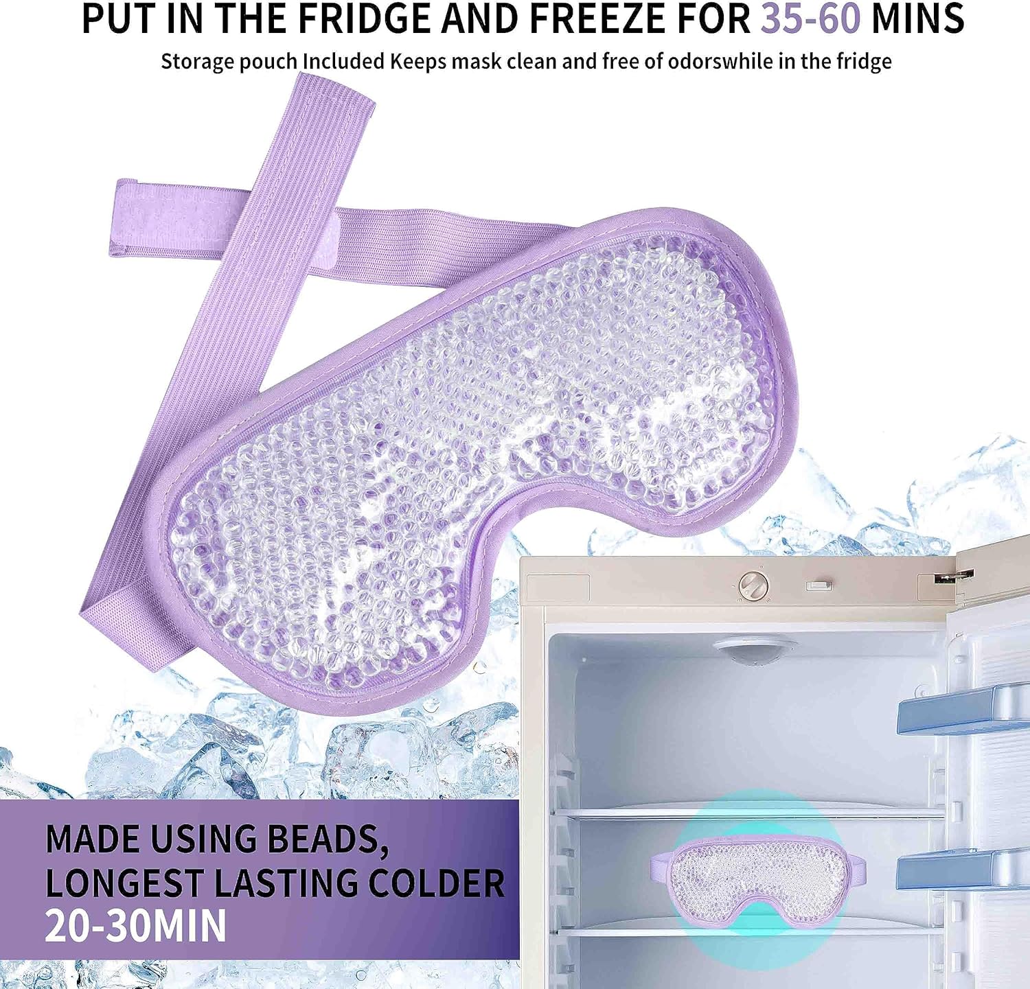 - HOW TO USE: Put in the refrigerator and freeze for 35-60 mins(Control time according to personal preference); No time limit on the refrigerator fresh-keeping layer. The ice eye mask comes with a resealable bag that helps for healthful storage and prolong the product lifetime or isolate the fridge odor