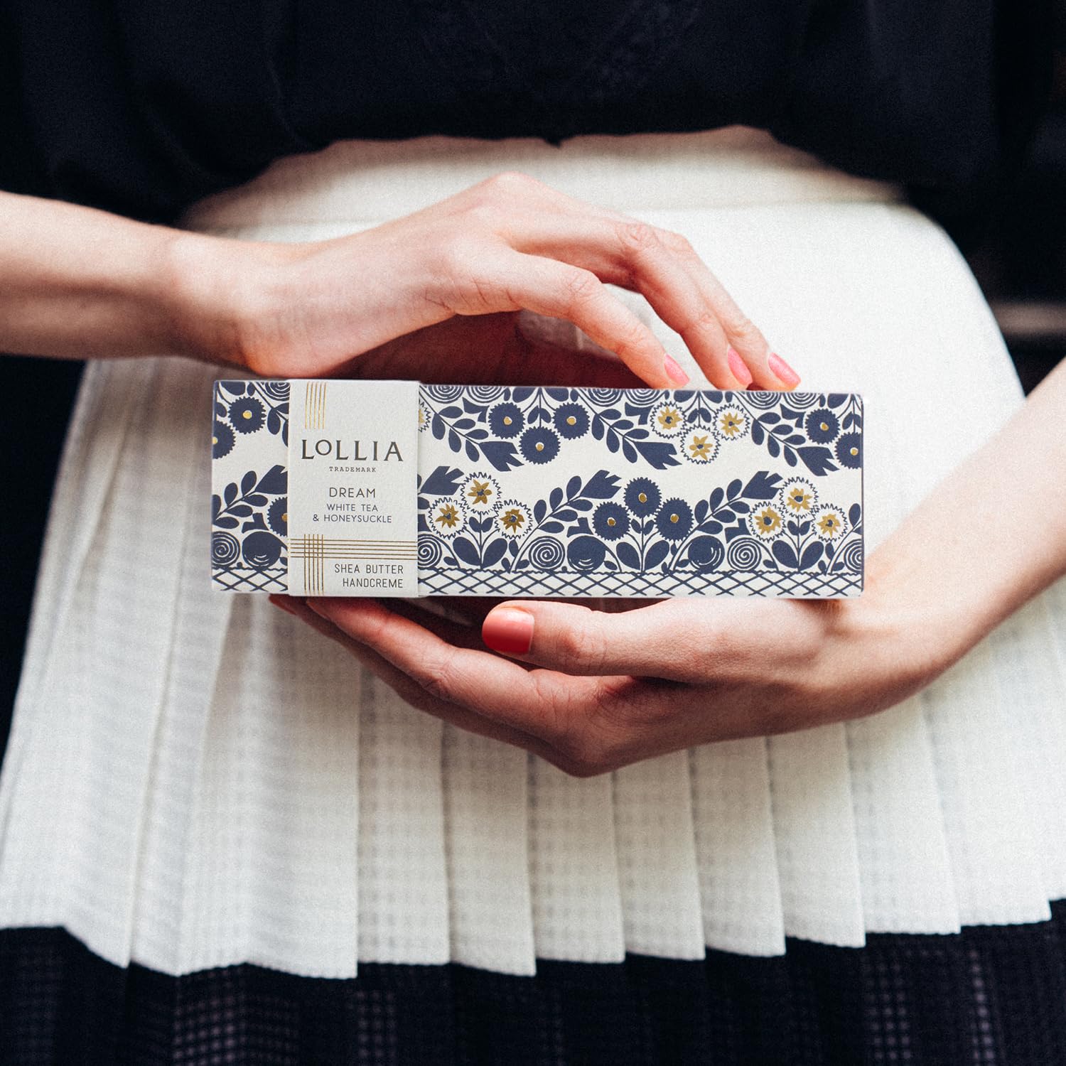 - DREAMY WHITE TEA & HONEYSUCKLE: Lollia Dream Handcreme helps soothe and lightly moisturize for beneficial hydration. Dreamy infusions of linden, white tea, bergamot, and honeysuckle leave the skin deliciously fresh and delightfully fragranced