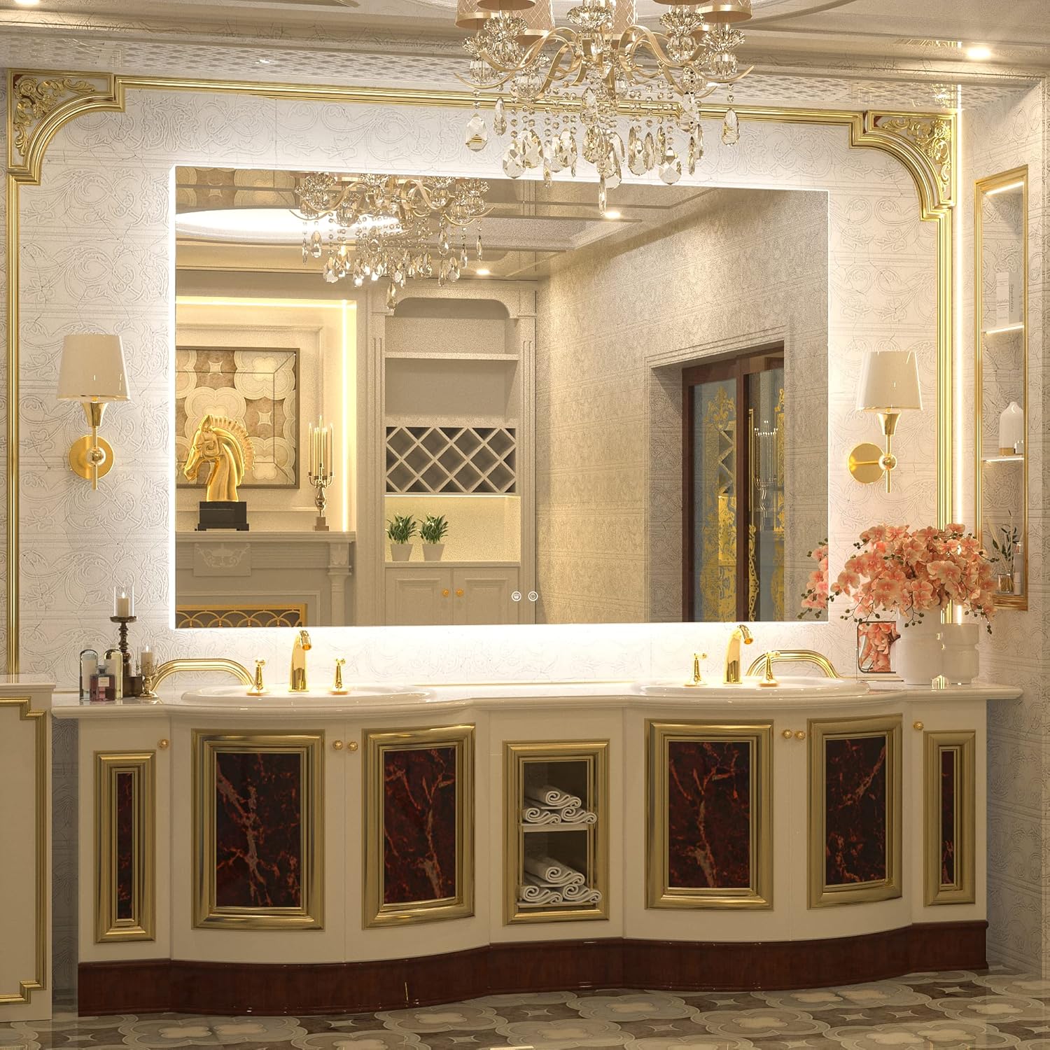 TETOTE 60 x 40 Inch LED Backlit Bathroom Mirror with Light,Anti-Fog,Dimmable,CRI90+,Water Proof,Vanity Lighted Mirror,Wall Mounted(Horizontal/Vertical)