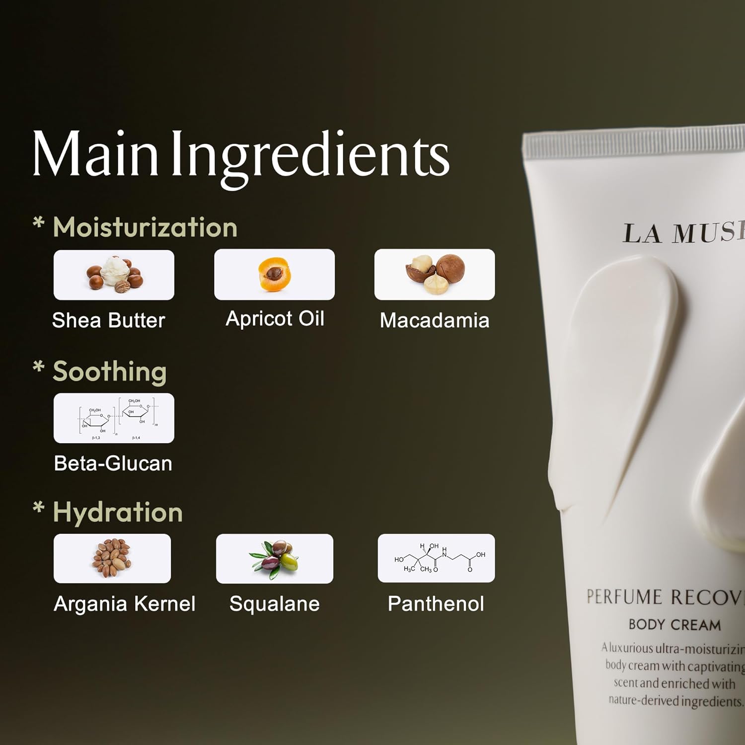 - 1.🌼SIGNATURE SCENT_FLORAL MUSK: Blended soft musk, rich, sandalwood, and warm woody notes into a harmonious composition. This serene, mist-like fragrance calms both body and mind while delivering deeply moisturizing care with a lasting, unforgettable scent.