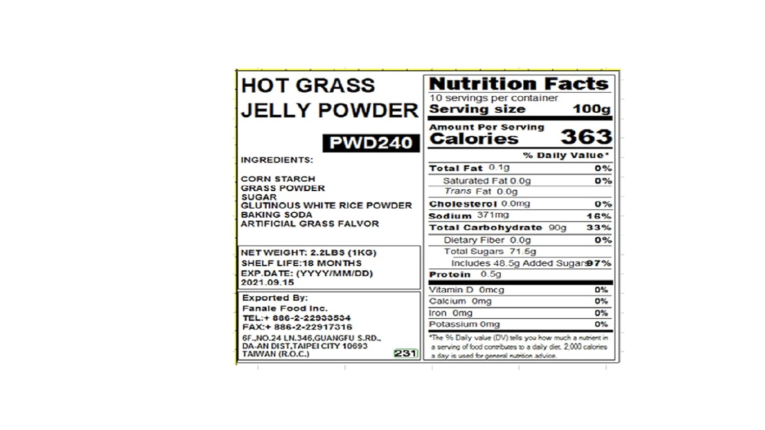 - Flavor : Grass Jelly