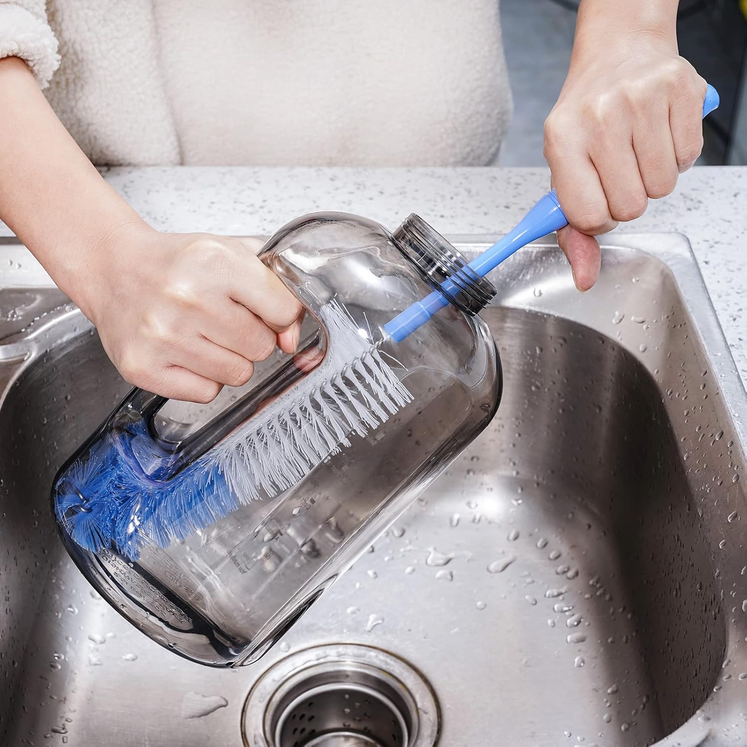 - Multifunctional Professional Brushes: The worthy bottle brush set cleaning kit for narrow neck skinny bottle, baby bottles, kombucha, wine decanter, sports water bottles, jug, thermos, carafe, pitcher, vase, spiral glass pipe, bathroom sinks, beer brewing bottles while small brush will clean even smallest, tiny openings and straws