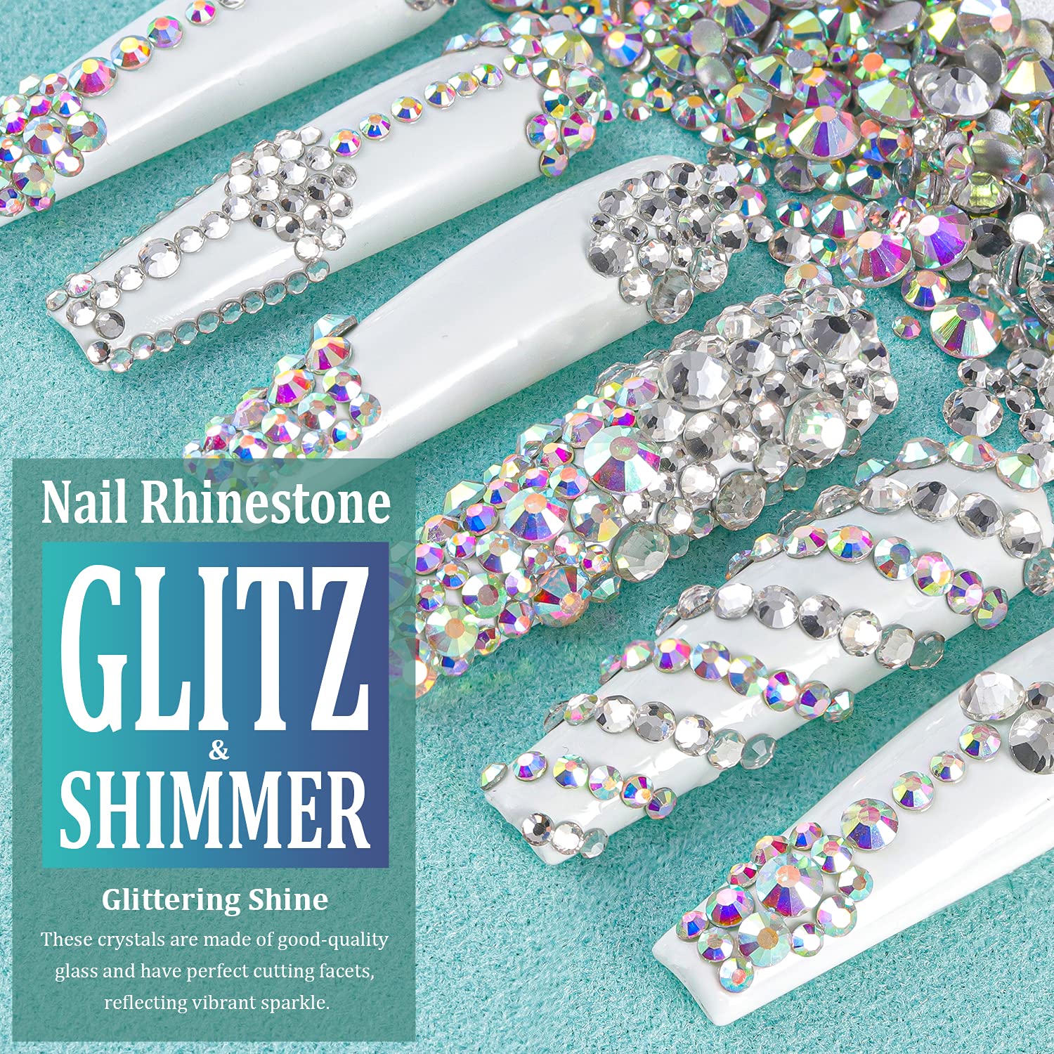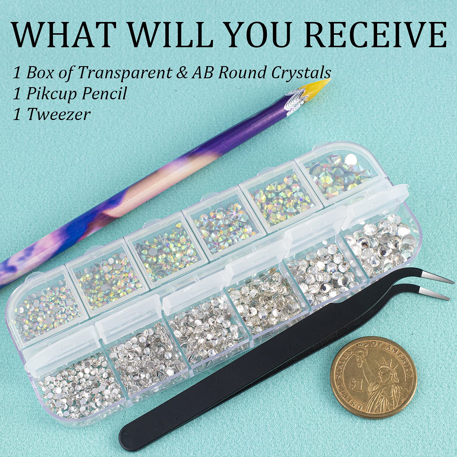 • ❤WHAT YOU WILL RECEIVE -- 1 Box of 6 Sizes Transparent White and AB Round Glass Nail Crystal Rhinestones Beads (Totally About 1720 PCS); 1 PCS Rhinestone Picker Pencil; 1 PCS Tweezer. The Well Equipped Rhinestone Set Is Suitable for Both Professional Nail Technician and Inexperienced Starter for Nail Art.