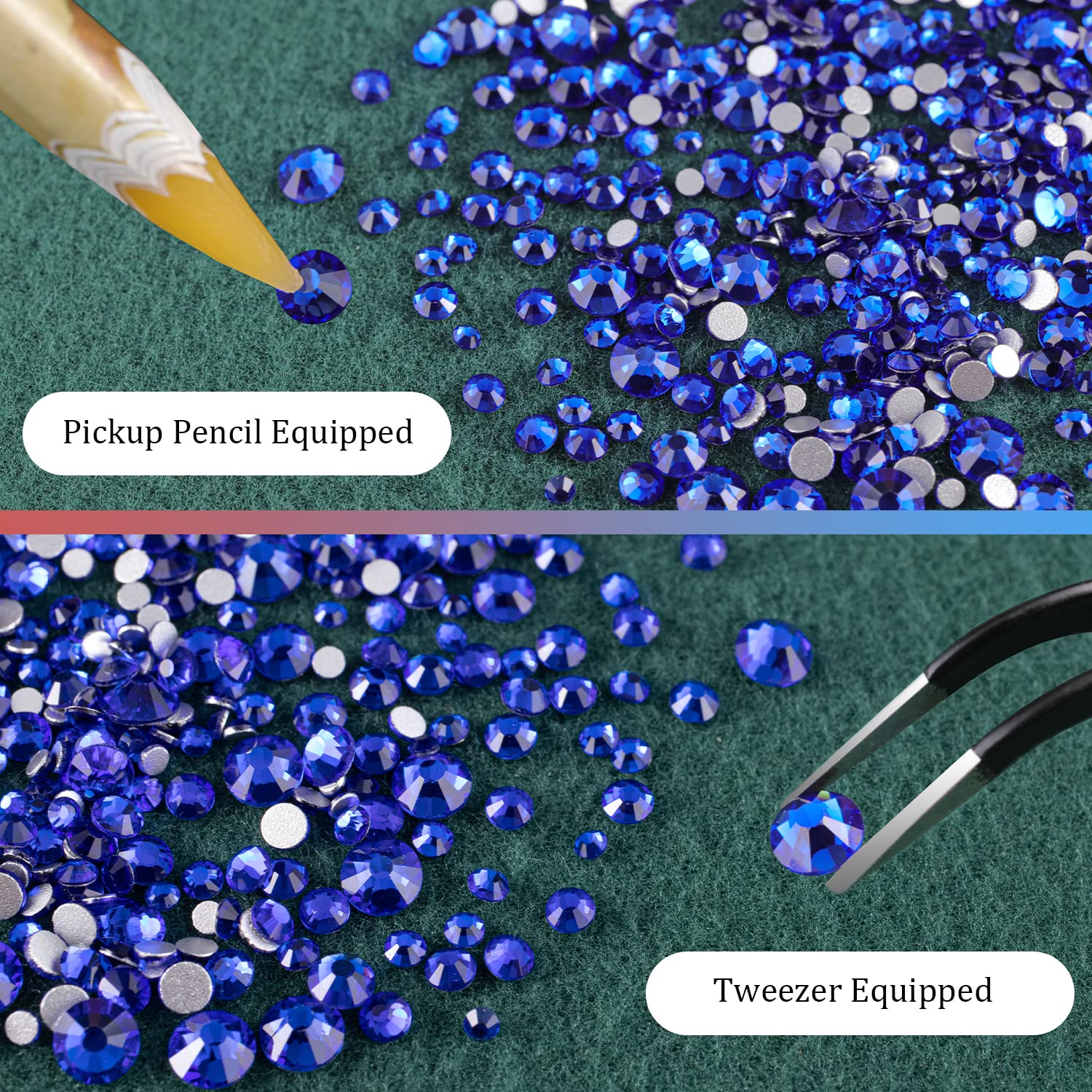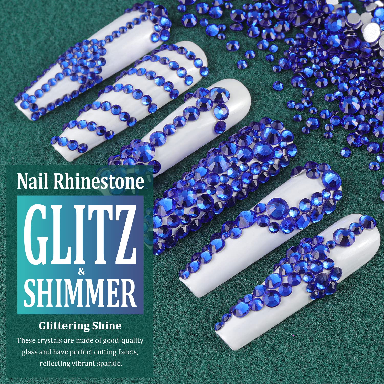 • ❤WHAT YOU WILL RECEIVE -- 1 Box of 6 Sizes Royal Blue Round Glass Nail Crystal Rhinestones Beads (Totally About 1720 PCS); 1 PCS Rhinestone Picker Pencil; 1 PCS Tweezer. The Well Equipped Rhinestone Set Is Suitable for Both Professional Nail Technician and Inexperienced Starter for Nail Art.