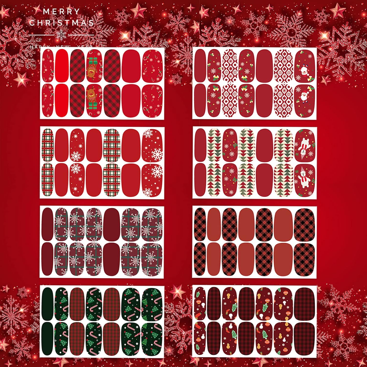 TailaiMei 14 Sheets Christmas Nail Wraps Stickers Nail Polish Strips Self-Adhesive Full Wraps with 2 pcs Nail Files for DIY Nail Art Decals (Gift Style)