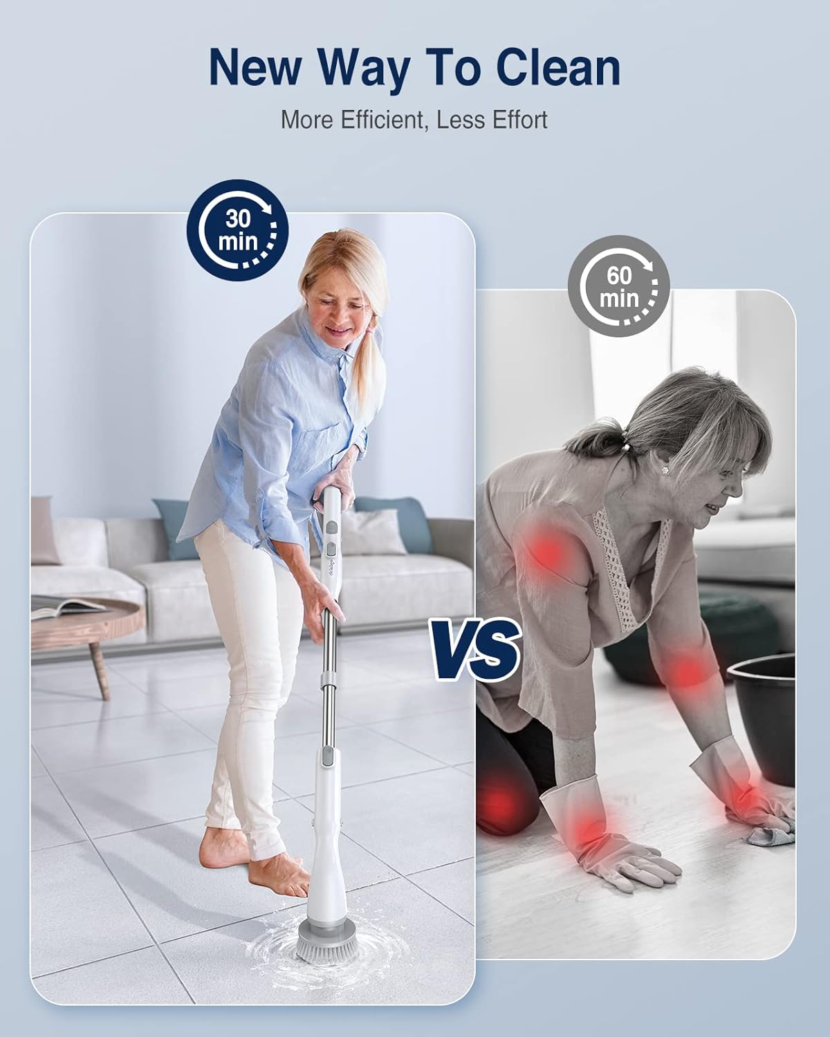- Efficient Cleaning Companion: LABIGO Electric Spin Scrubber streamlines household cleaning, saving time and effort with its ergonomic design that eliminates the need for bending or kneeling. For tough stains, pre-soak in detergent for 5 mins before use