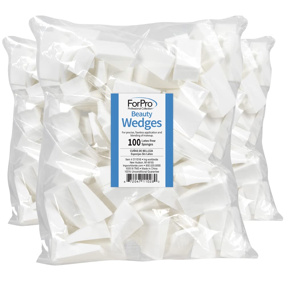 ForPro Professional Collection Beauty Wedges, Latex Free Foam Sponges, Makeup Blenders for Powder and Liquid Makeup, 100-Count (Pack of 3)