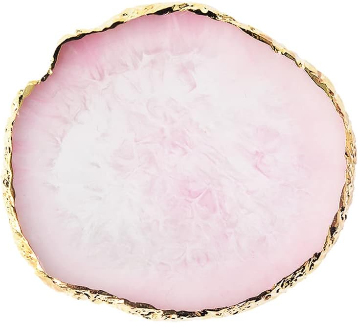 Resin Nail Art Palette, Nail Art Painting Mixed Color Palette Gold Edge Nail Gel Color Makeup Display Board (2#Pink)