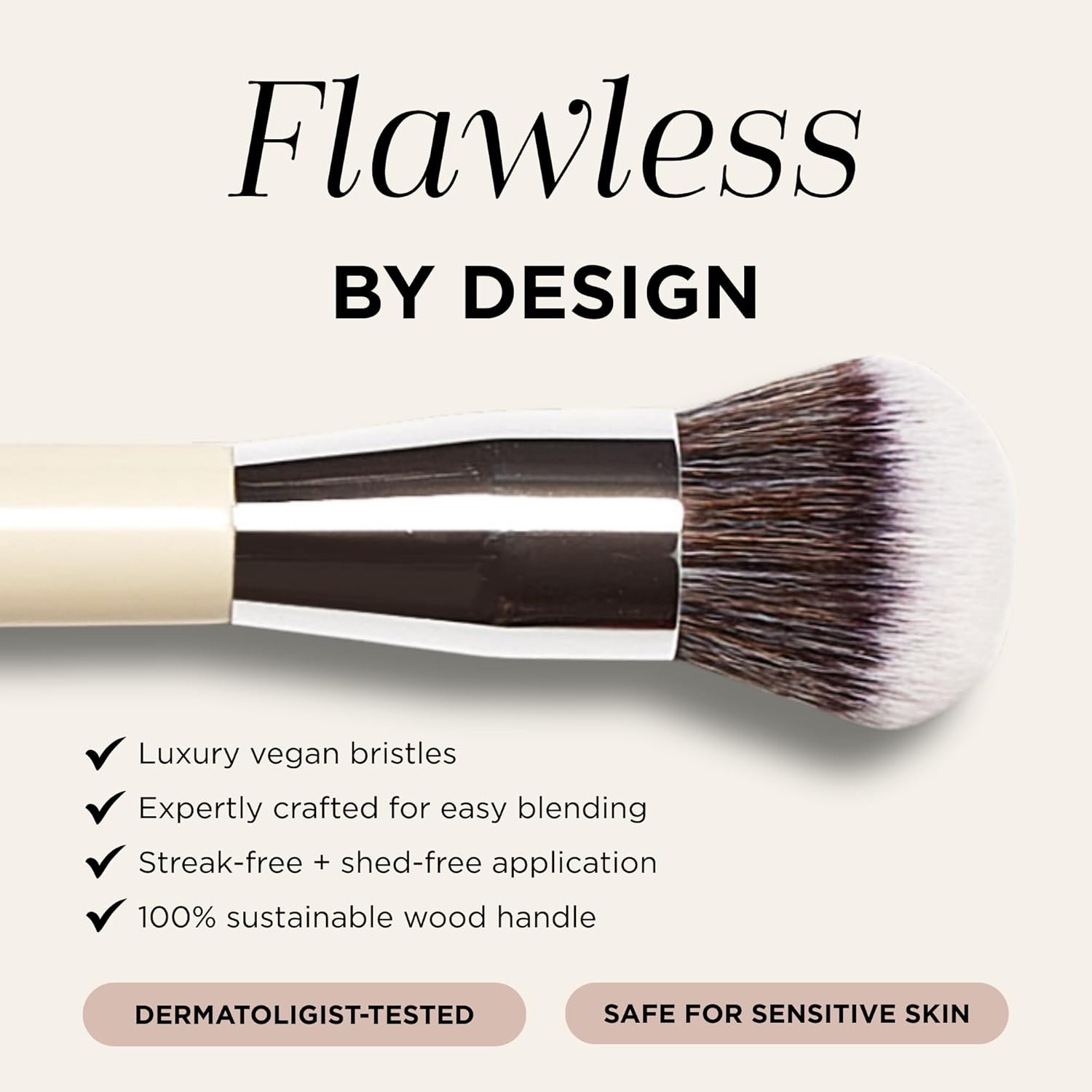 • TOP QUALITY BRUSH: This foundation brush helps liquid, cream, or powder makeup glide on seamlessly. Its super-soft, vegan, cruelty-free bristles are firm yet flexible, ensuring your makeup brush is always at its best! Its sustainable wood handle construction not only adds to its luxe appeal but also warrants long-lasting durability.