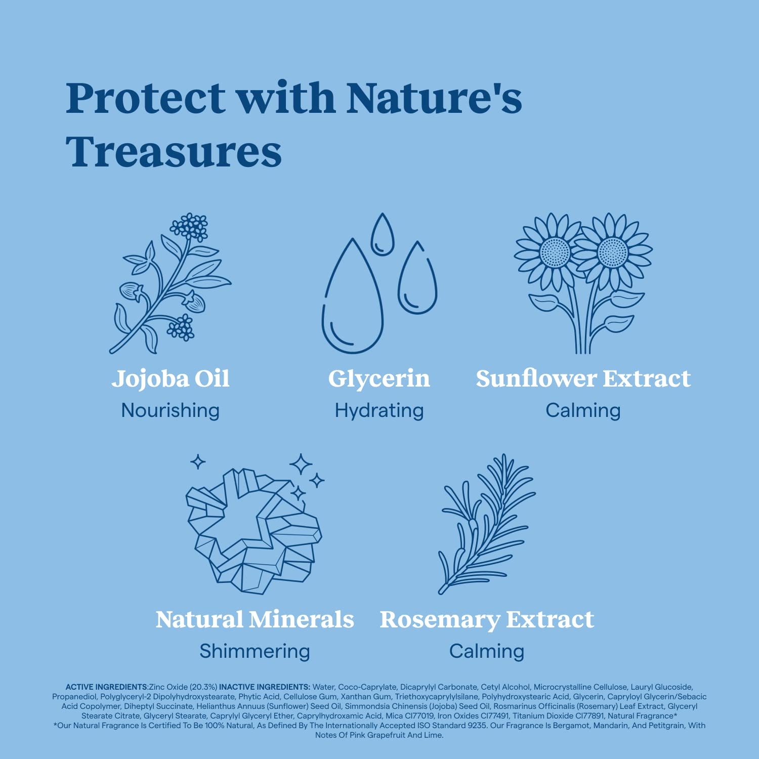 - An all-in-one sunscreen: Our daily broad-spectrum mineral sunscreen protects your face from harmful UVA/UVB rays and enhances your natural glow with a shimmering golden hue - oh, and it smells great