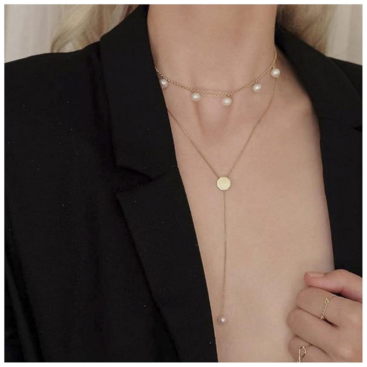 - Vintage layering gold pearl necklace jewelry.If there are any problems after receiving the product, please contact us in time and keep the RETURN & CHANGE label. We will do our best to provide you with an excellent shopping experience.