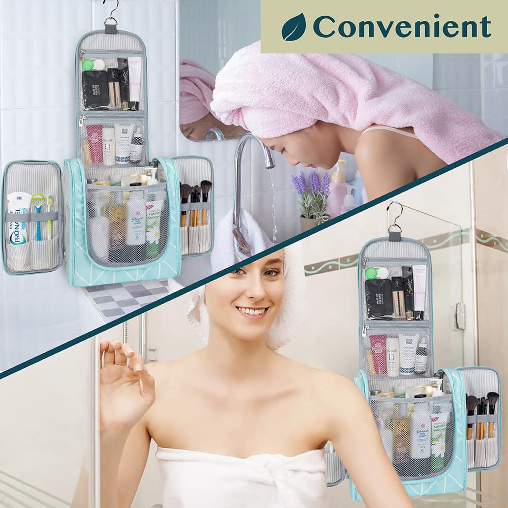 • EASY TO CLEAN: Simply wipe clean with damp cloth to maintain the toiletry bag travel bag. With its water resistant polyester fabric and waterproof compartment, this travel kit for women keeps your travel-size item, shampoo, conditioner, lotion, face wash, medicine, toothpaste, toothbrushes, hair brush and daily makeups protected and organized for every trip, cruise, flight! A must have for every travel packing list!