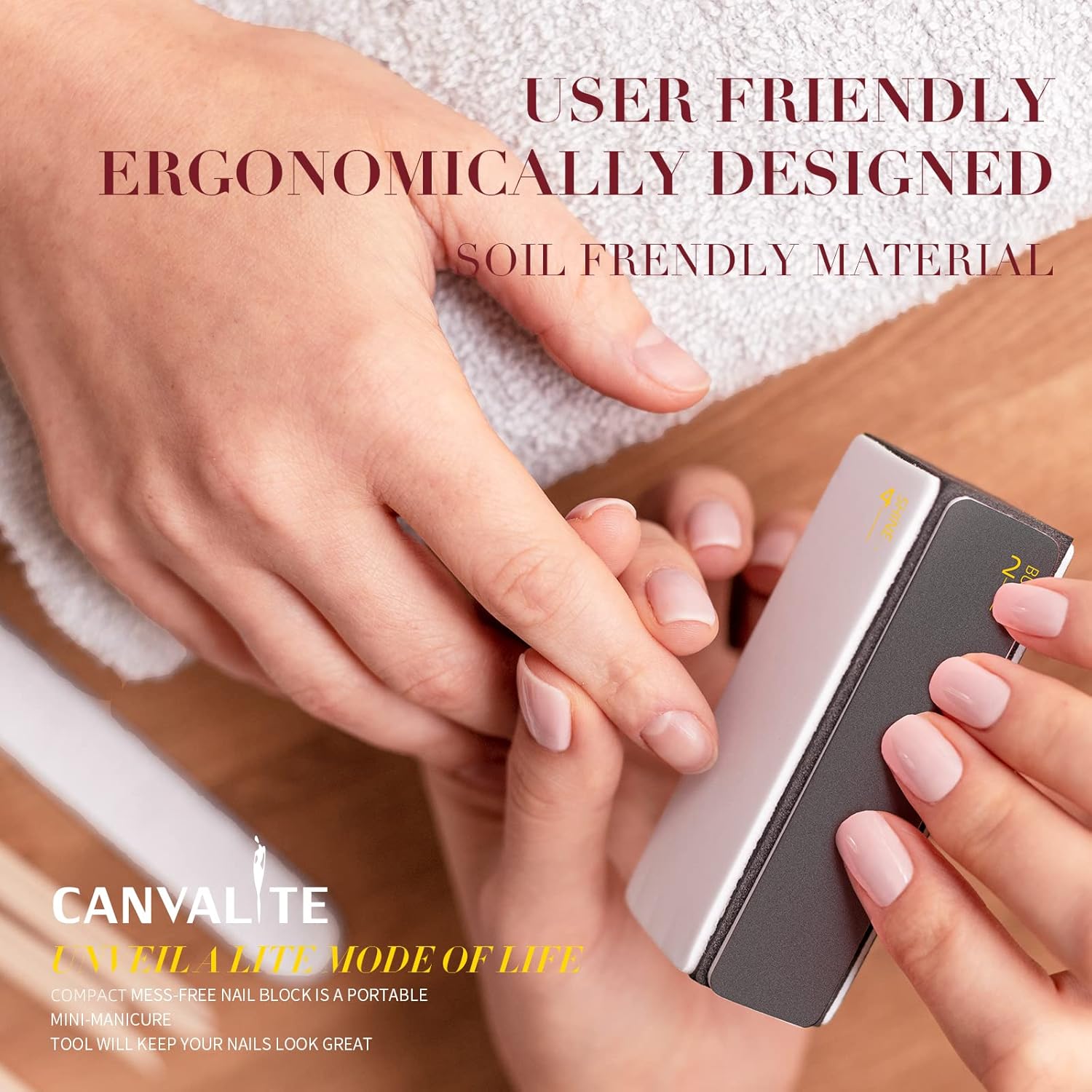 Canvalite Nail Buffer for Natural Nails, All in One 4 Way Nail File & Buffer Block That Shapes, Files, Smoothes, and Shines, 100/180 Grit, 9pcs