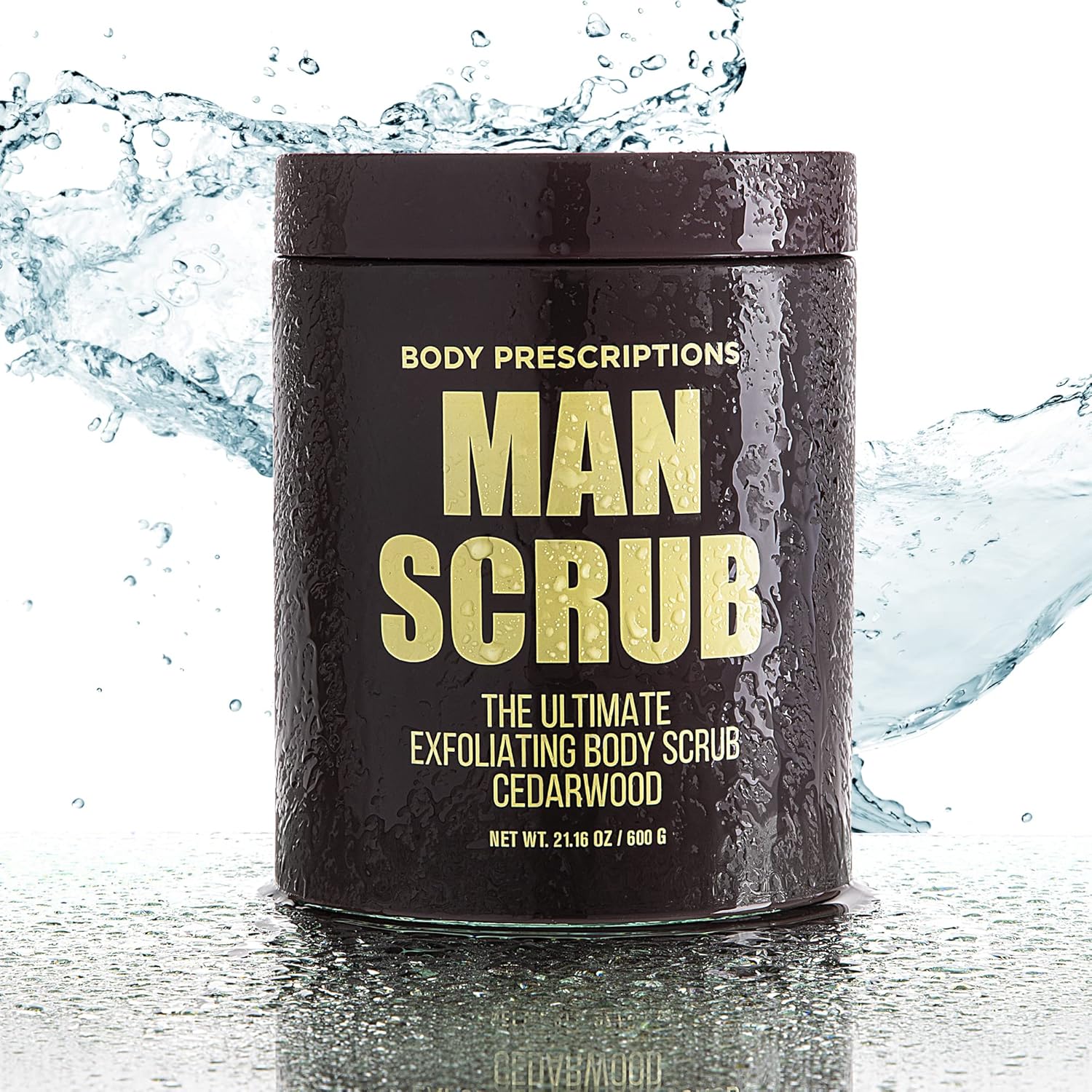 • RELAX + REFRESH: Delight your senses and relax at home with this 21.06 oz ultimate exfoliating body scrub from body prescriptions. The “Man Scrub” comes in a large jar with an easy-to-use twist off top.