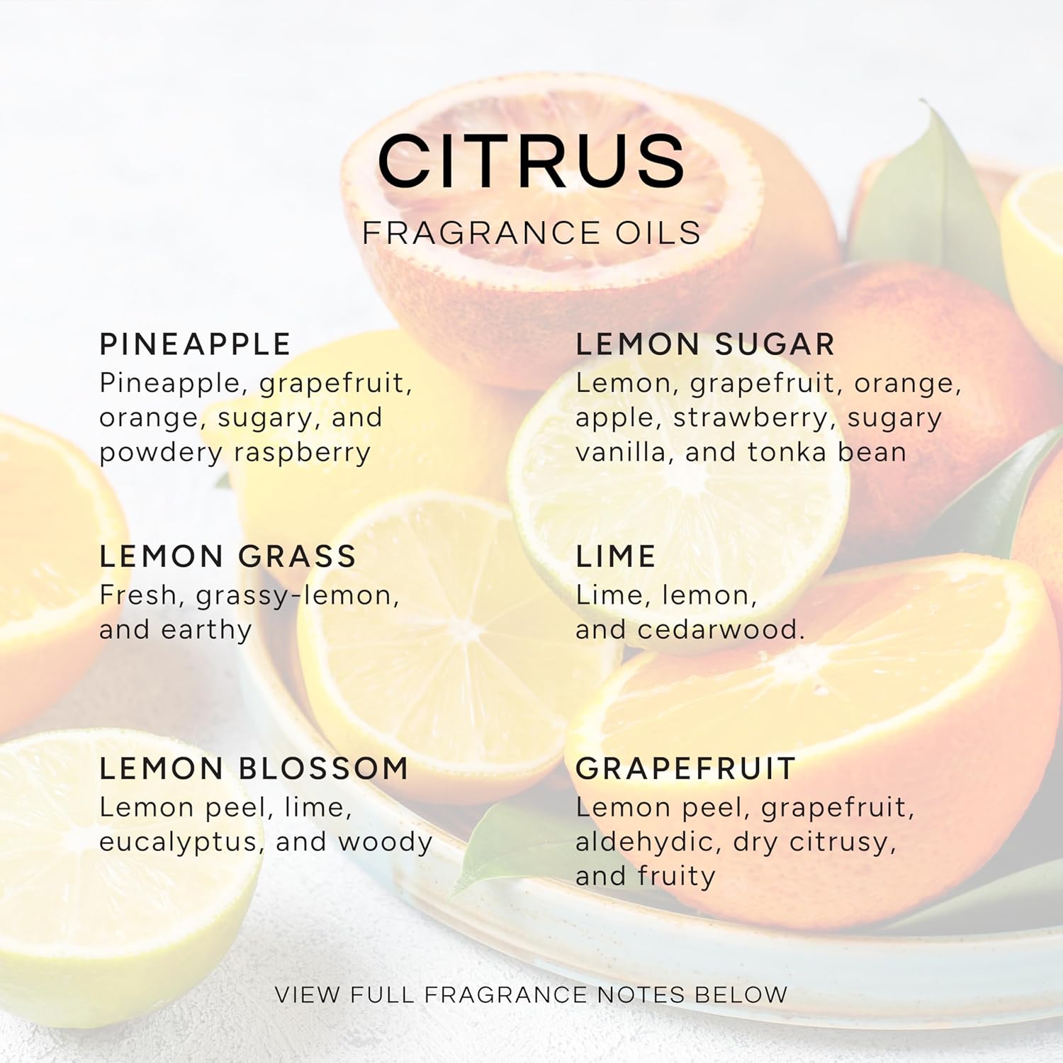 Eternal Essence Oils Citrus Set of 6 Premium Fragrance Oils - Lemon Grass, Blossom, Sugar, Lime, Grapefruit, and Pineapple - for Diffusers, Candle & Soap Making, & Aromatherapy - 10ML