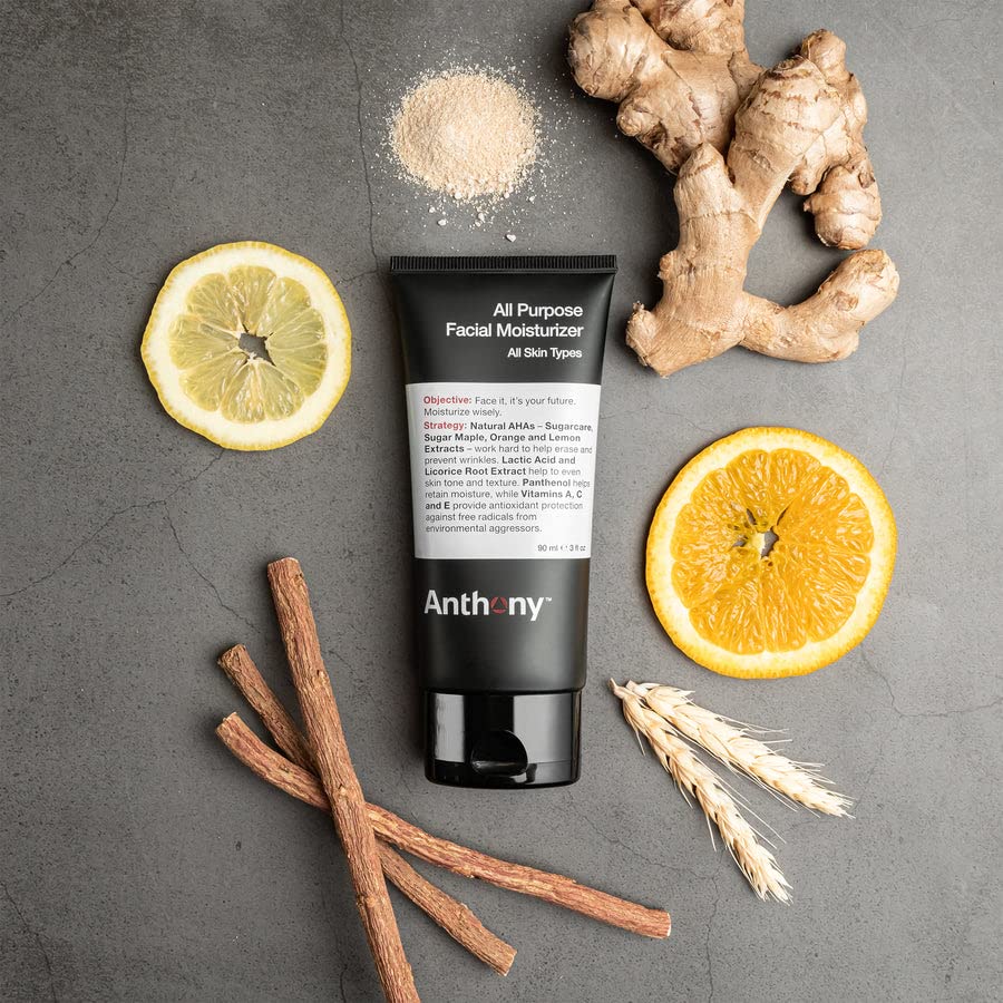 Anthony All-Purpose Facial Moisturizer for Men, Hydrating Lotion for Dry Skin, Lightweight, Non-Comedogenic, Anti-Aging Formula, 3 Fl Oz, Pack of 3