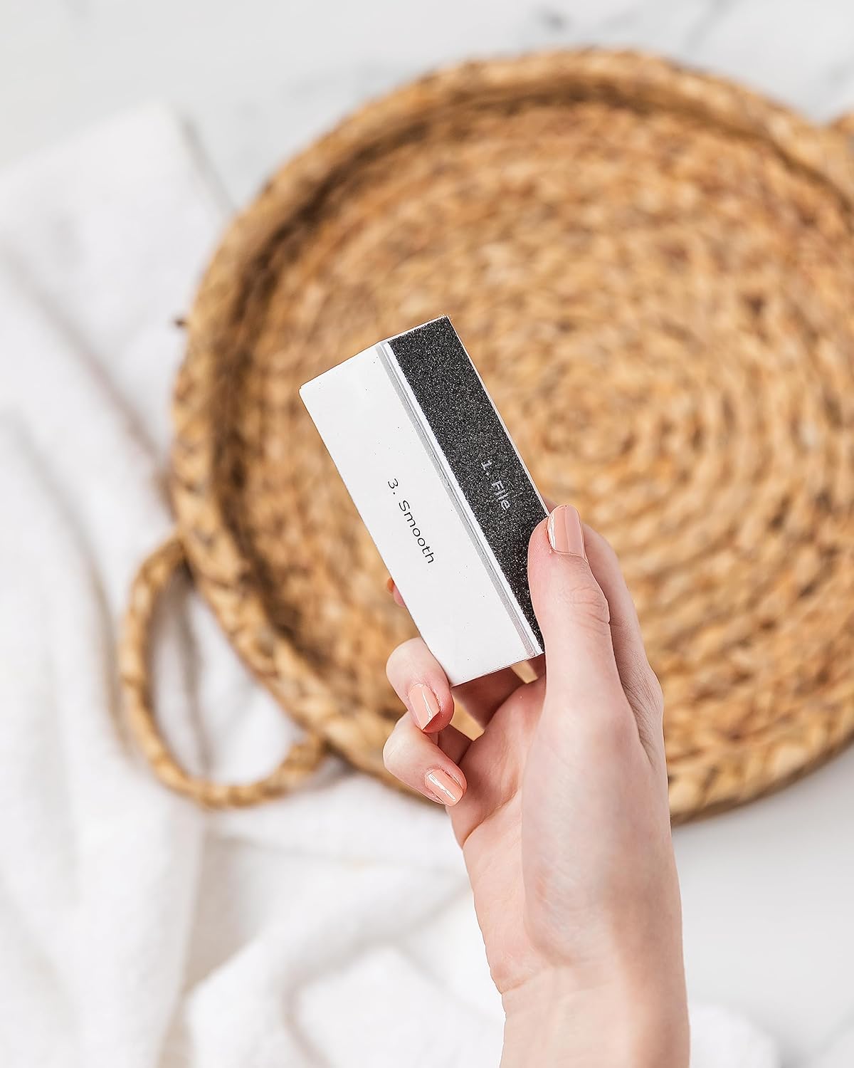 - Set of Three Four-Way Buffing Blocks: Includes three high-quality buffing blocks, designed to smooth, even, and shine your nails with ease.