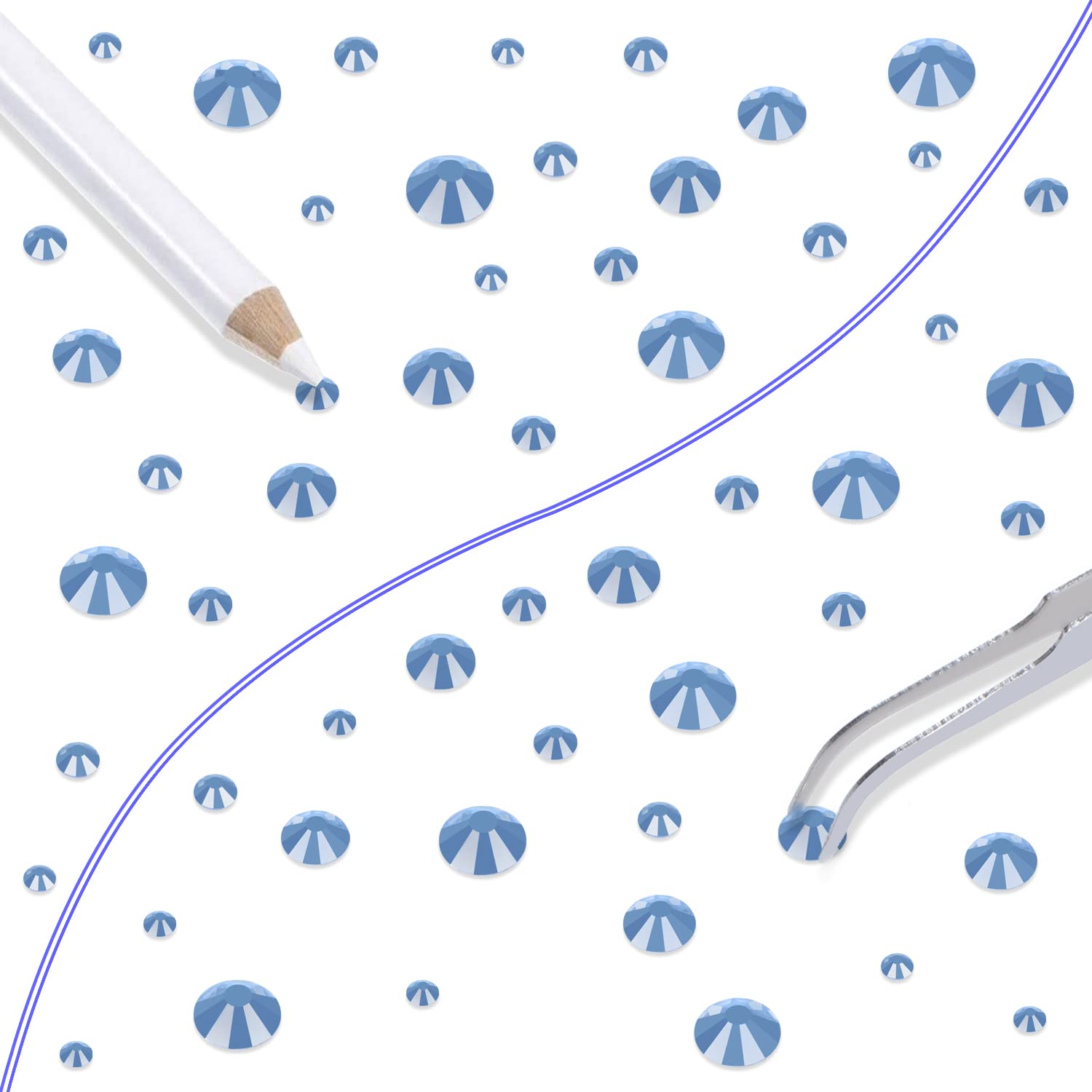LPBeads 6000 Pieces Lt Sapphire Non Hotfix Rhinestones 6 Sizes Round Crystal Glass Flat Back Rhinestones with Tweezers and Picking Pen for Nail Art Crafts Clothes Bags DIY