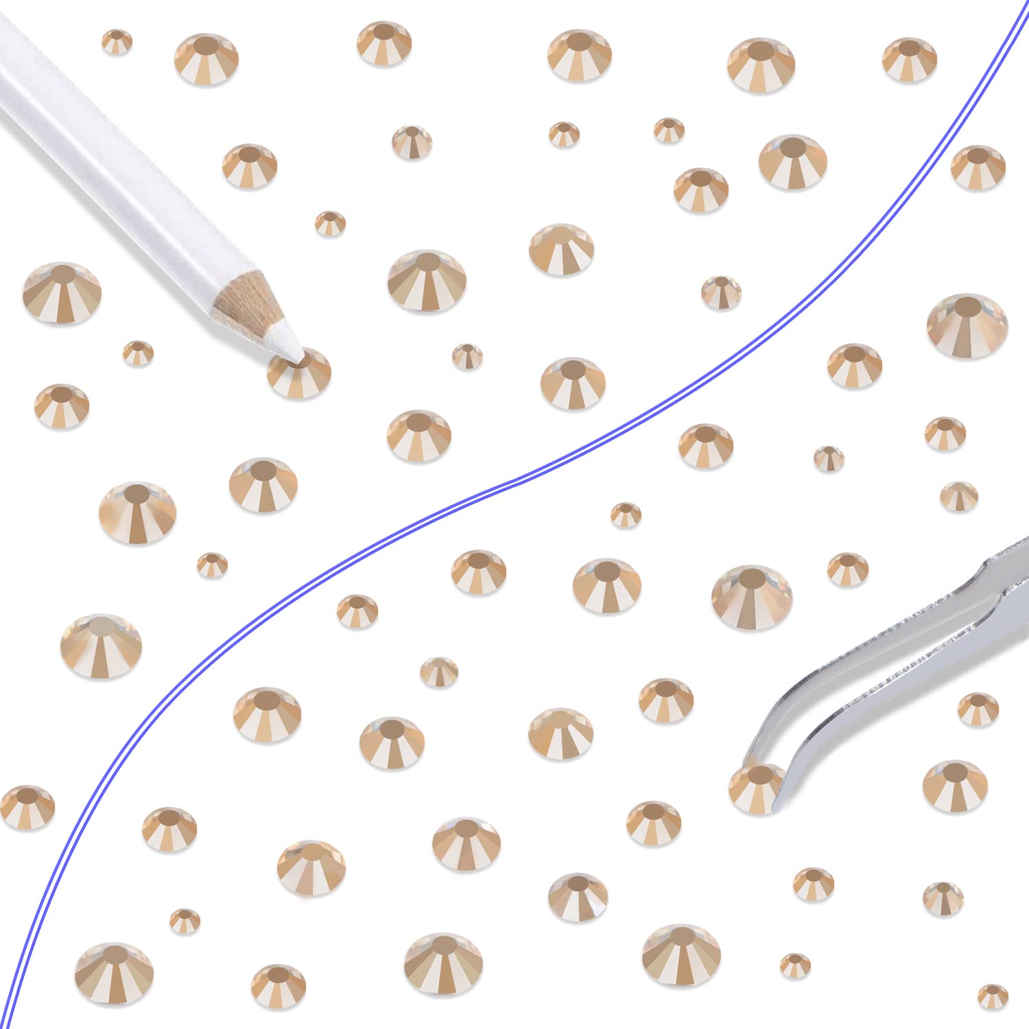 LPBeads 6000 Pieces Champagne Non Hotfix Rhinestones 6 Sizes Round Crystal Glass Flat Back Rhinestones with Tweezers and Picking Pen for Nail Art Crafts Clothes Bags DIY