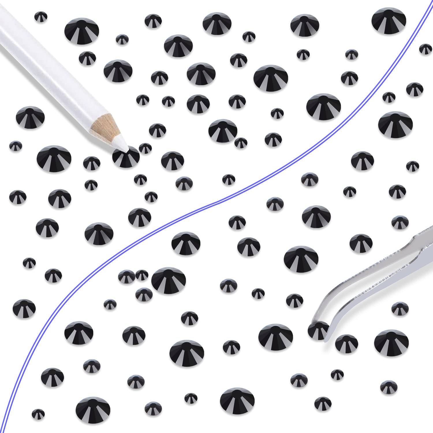 LPBeads 6000 Pieces Black Non Hotfix Rhinestones 6 Sizes Round Crystal Glass Flat Back Rhinestones with Tweezers and Picking Pen for Nail Art Crafts Clothes Bags DIY