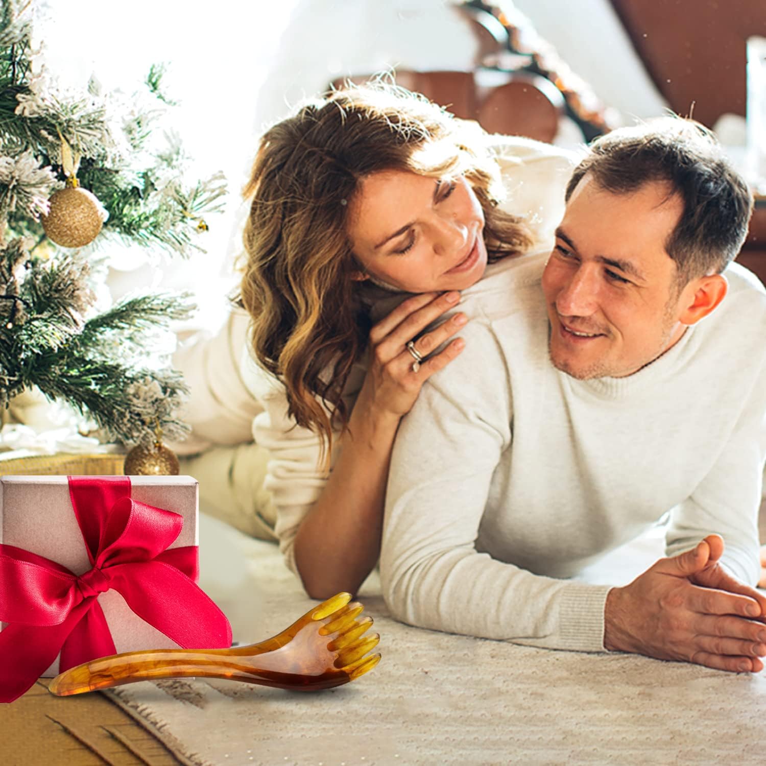 Scalp Massage Tools, 2-Pieces Head Scratcher Massager Whisk, Gift for Mother, Sister,Kids and Lover, Portable Resin SPA Tools with a Black Zippered Bag(Amber)