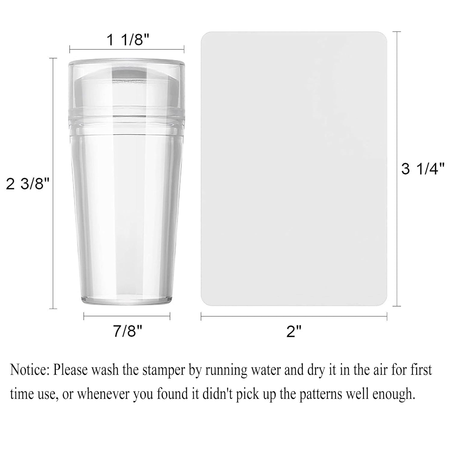 - Gentle Cleaning Instructions for Longevity: for stamp please never use acetone or alcohol cleaners. Silicone stamp heads will harden and get damaged if exposed to chemical solvents! To clean, simply remove excess polish with tape or gently wipe with a cotton pad dampened with water/stamp cleaner. About nail stamping plates can be wiped with a damp cloth.