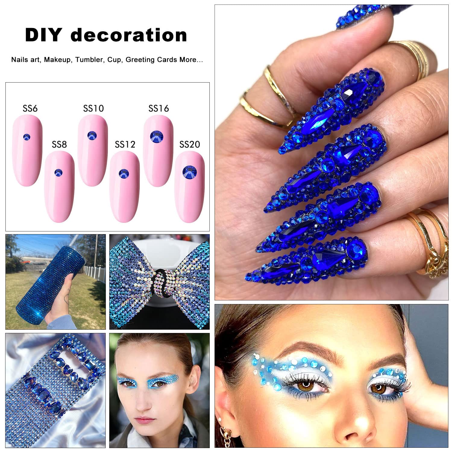 - 💎You can use rhinestones for, Nails, Art, Jewels, Skin, teeth, face, eye, Makeup, tumbler, glass, crafts, cardstock, phone, phone case, plastic, glasses etc. If you are using shoes, clothing, fabric textile type, I suggest you search on Amazon: B09ZQKTW4V