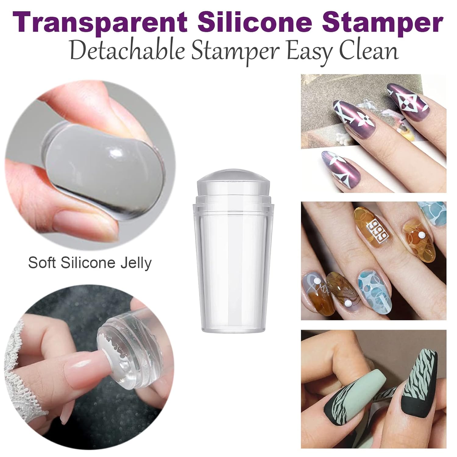 - [Visible Jelly Stamper for Nails] Silicone nail stamper is so clear that you can see where you pressing on nails and do not distort the image, easily and quickly picking up patterns, saving your time on complex patterns design, to create amazing summer nail art