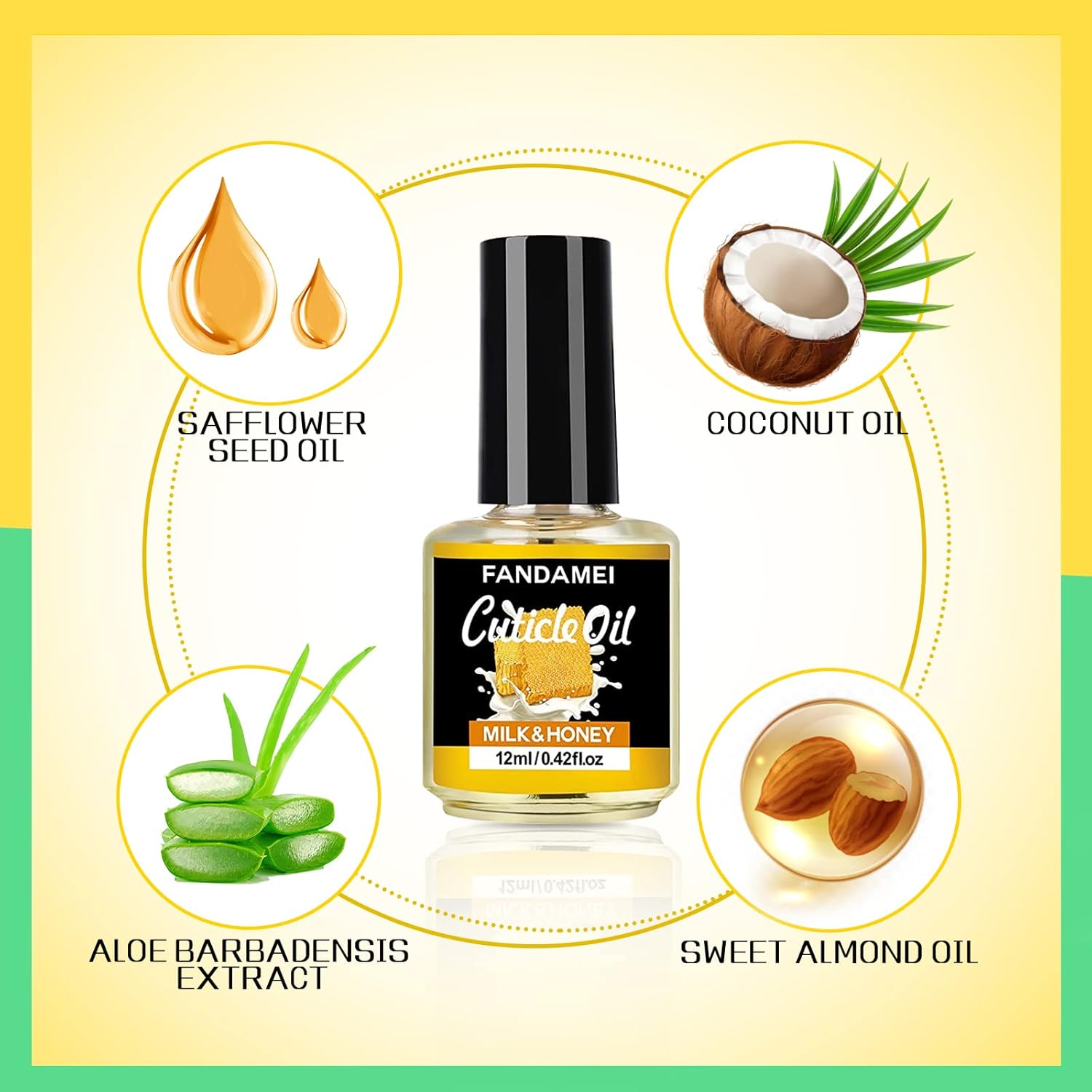 • Milk and Honey Nail Cuticle Oil: Made of high quality natural ingredients, a variety of vitamins, softens and strengthens the cuticles and nails. Anti-oxidation, moisturize the nails and cuticle skin. And amazing light and sweet fragrance helps to relax and give you a good mood. You can use it as a daily nail treatment and we also recommend to use when you finish the manicure or after removing gel nail polish.