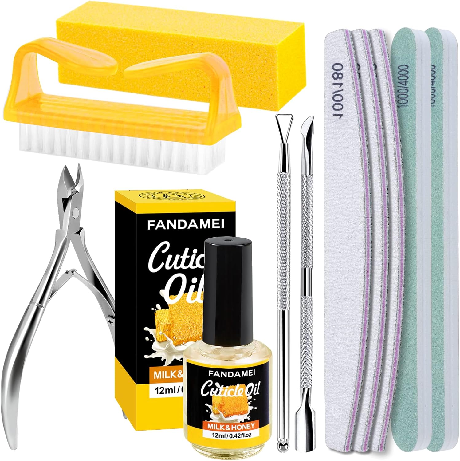 FANDAMEI Nail Buffer and File, Nail Care Kit with 3PCS Nail Files, 2PCS Nail Buffers, Rectangular Nail Buffer Block, Cuticle Nipper, Cuticle Pusher, Peeler. Cuticle Oil Milk and Honky Nail Manicure