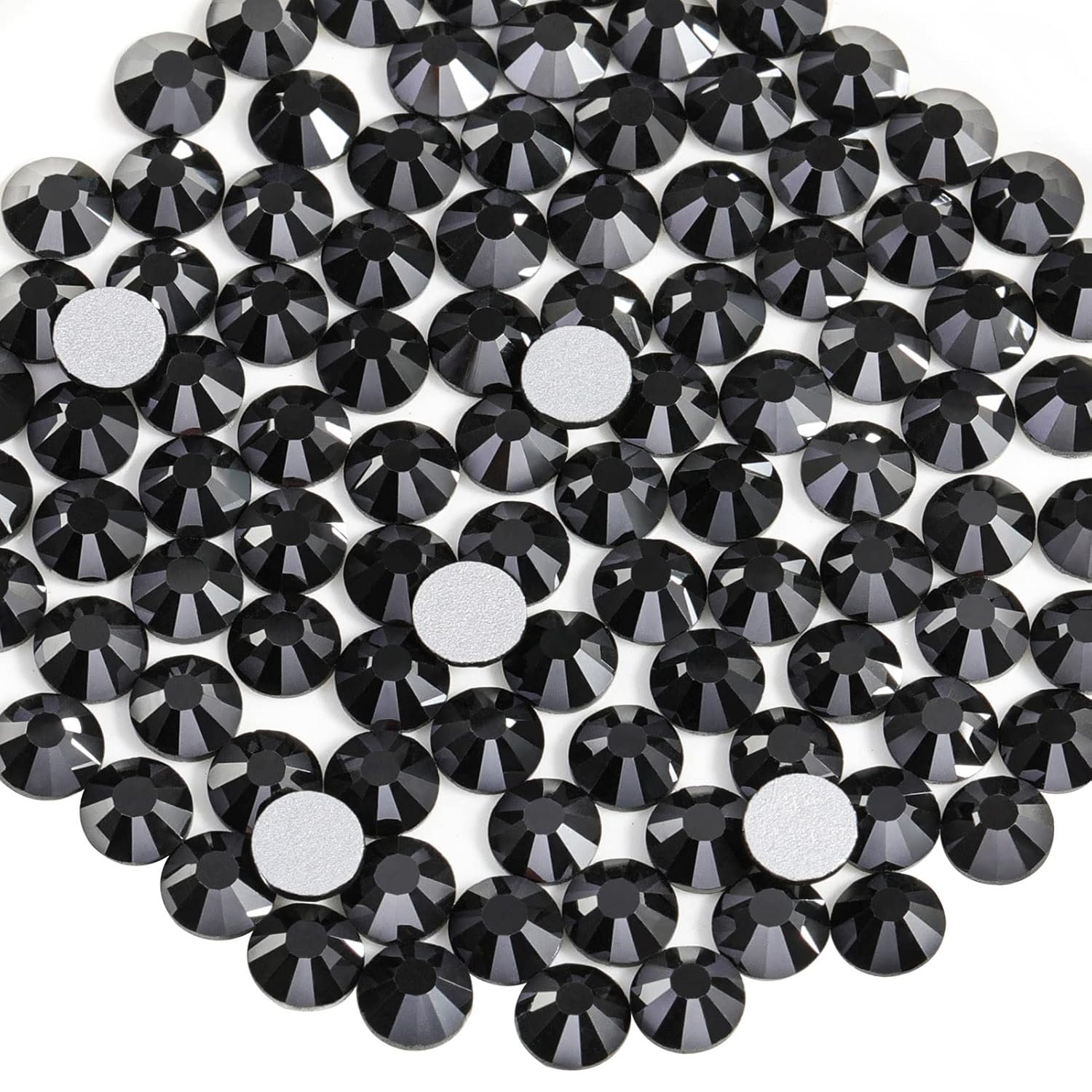Beadsland 288pcs Flat Back Crystal Rhinestones Round Gems for Nail Art and Craft Glue Fix, Jet Hematite,SS30,6.3-6.5mm